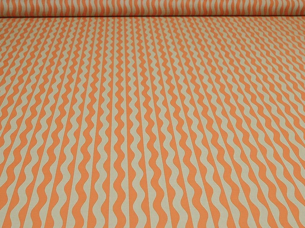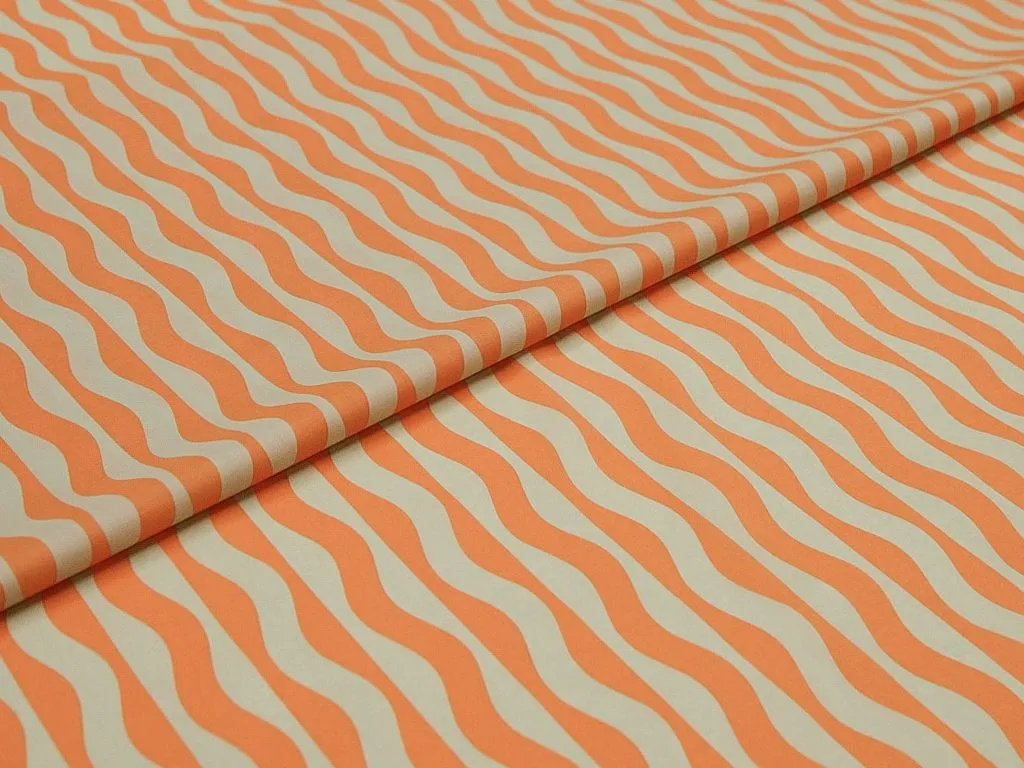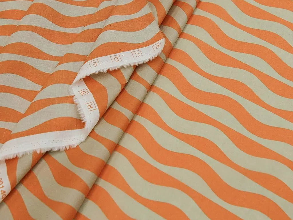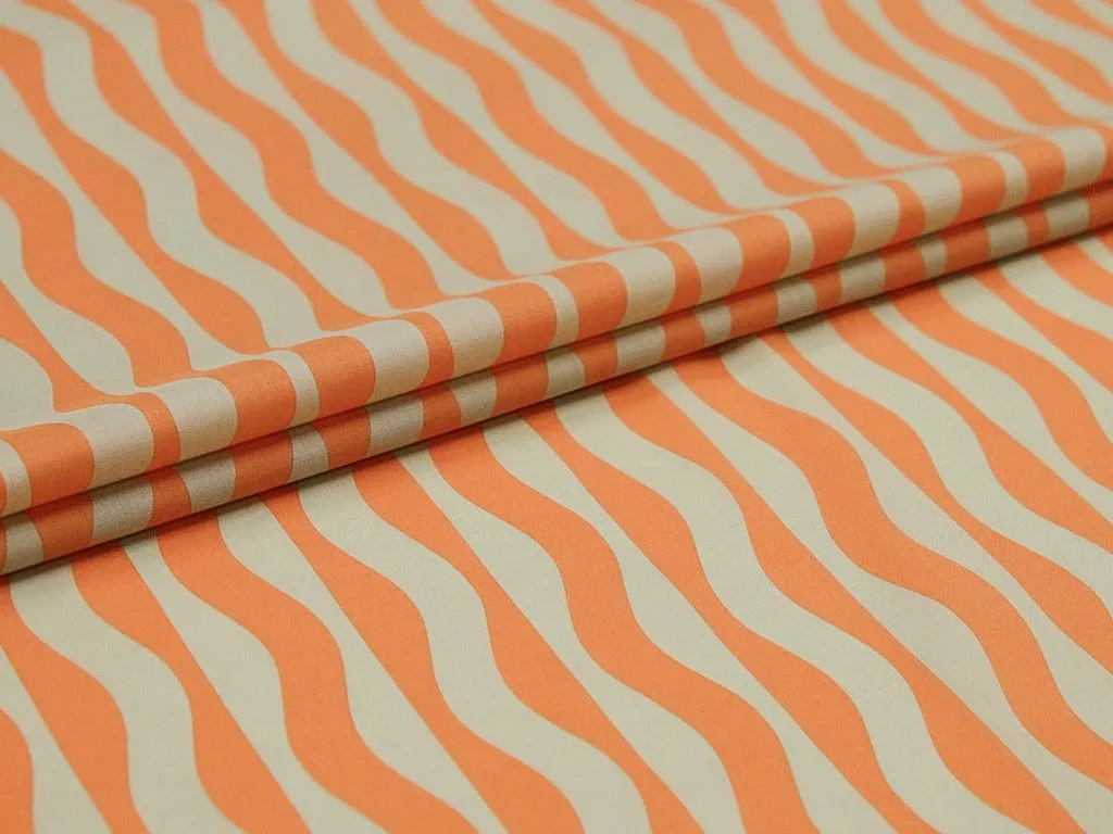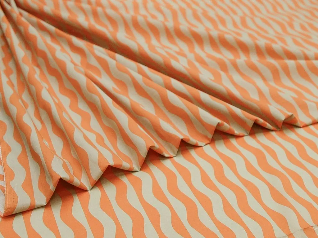 Батист с вертикальным рисунком "Волны", цвет оранжево-бежевый