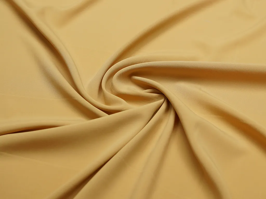 Шелковая блузочная ткань темно-бежевого цвета с добавлением ацетата и эластана, очень комфортная и легкая, слегка прозрачна на просвет. Материал приятен к телу, мягко драпируется и струится. Подходит для пошива блузы, юбки или платья.