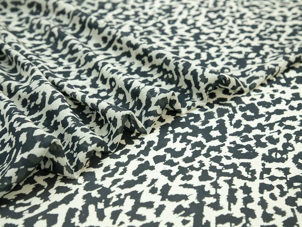 Блузочно-плательная ткань с анималистичным рисунком, цвет черно-бежевый