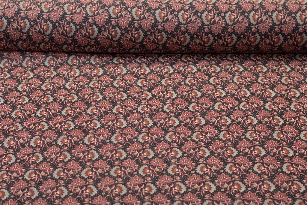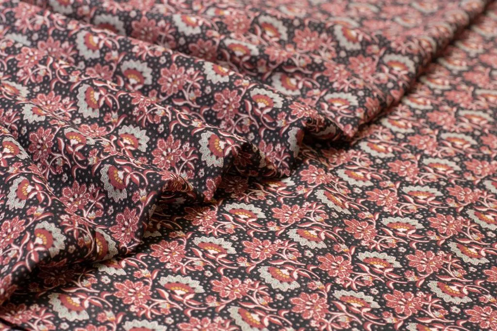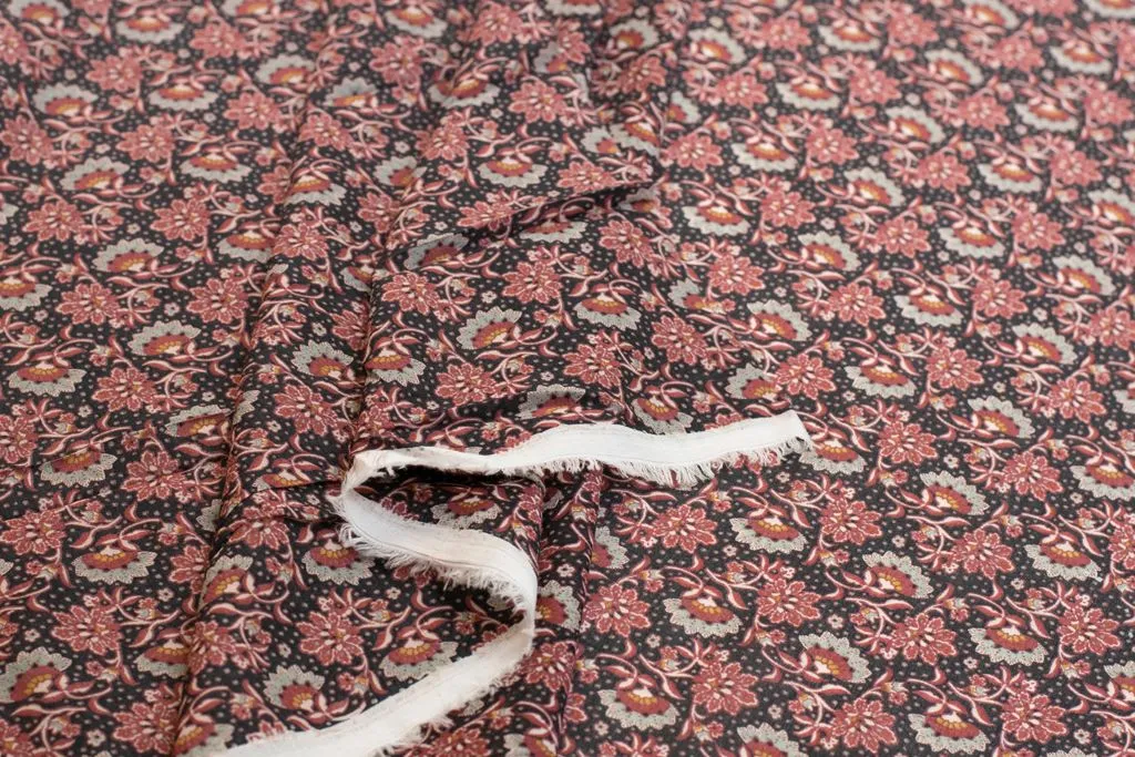 Шифон блузочно-плательный с рисунком "Сказочные цветы", в коричневых тонах