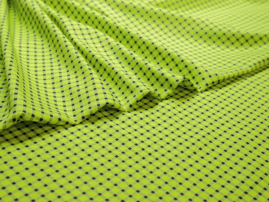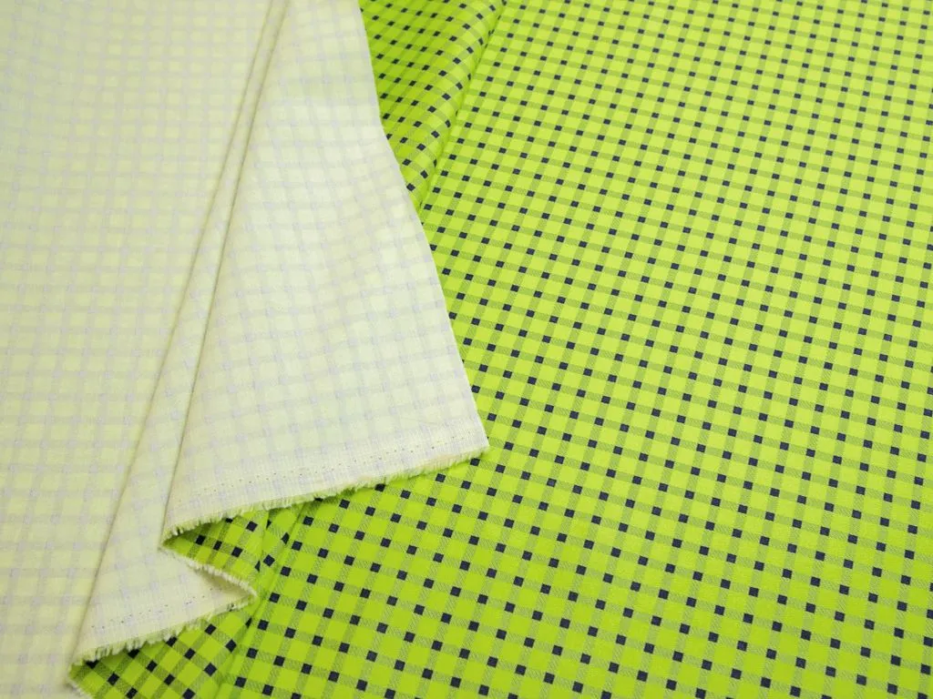 Хлопок костюмно-плательный в черную клетку на желтом фоне