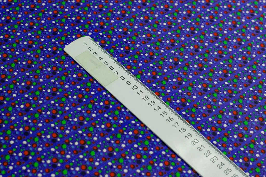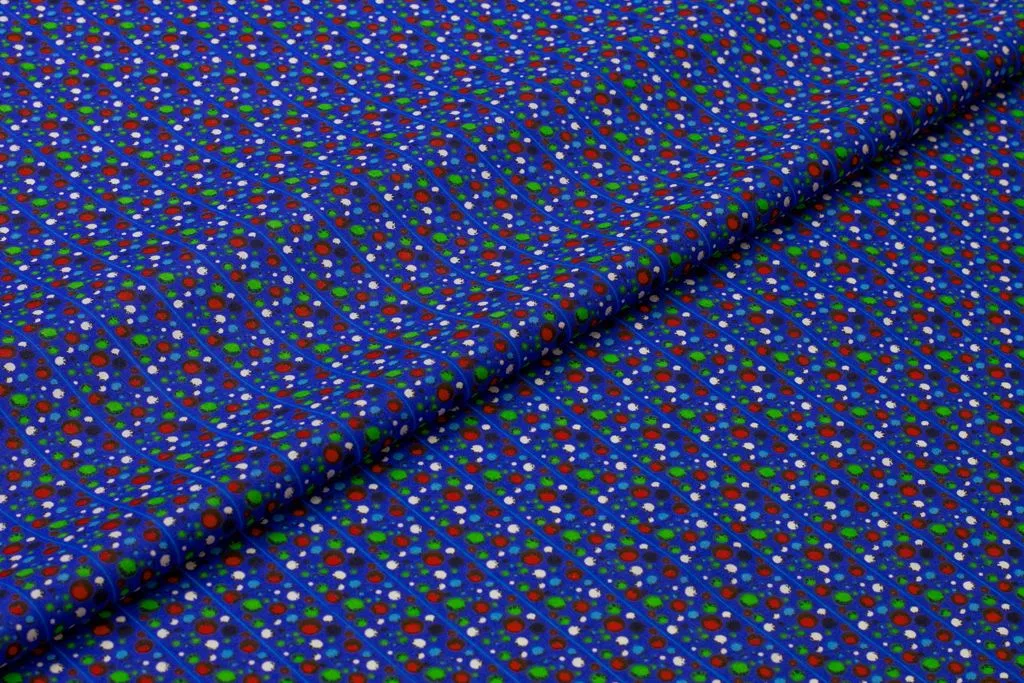 Рубашечно-плательный хлопок с рисунком "Полосы шариков" на ярко-синем фоне