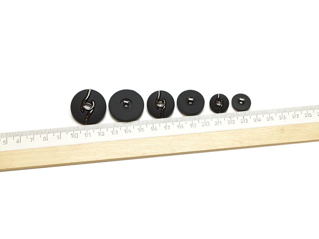 Пуговица на ножке, пластик, чёрная резина/чёрный никель, диаметр 15 мм