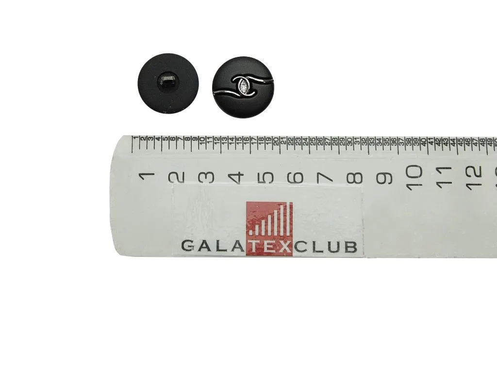 • Пуговица на ножке, пластик, чёрная резина/чёрный никель, диаметр 21 мм