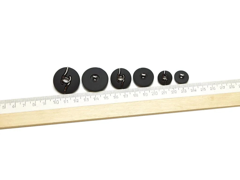 Пуговица на ножке, пластик, чёрная резина/чёрный никель, диаметр 21мм