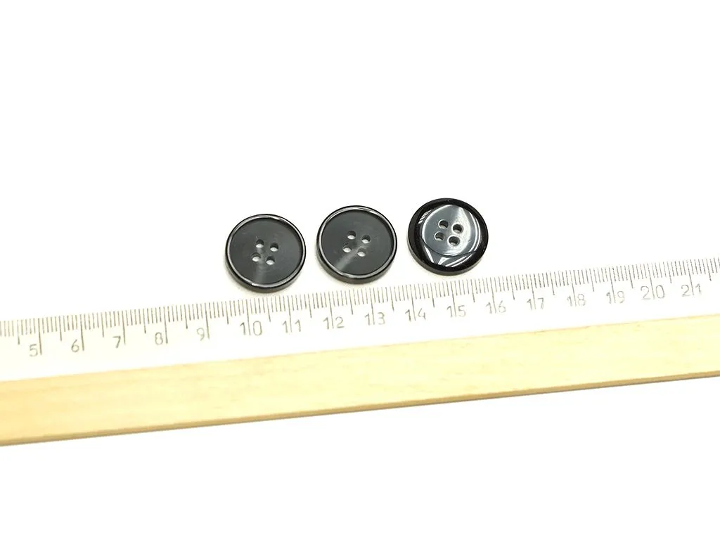 Пуговица пластмассовая, 4 прокола, черная с серым, матовая, диаметр 20 мм