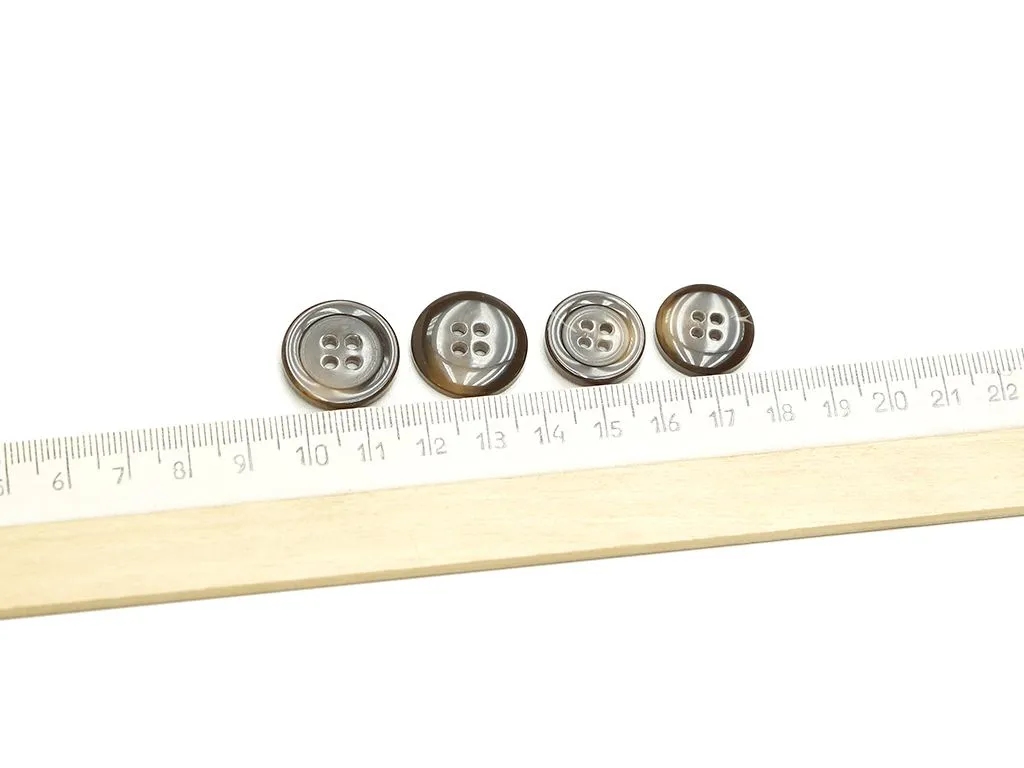 Пуговица пластмассовая, четыре прокола, коричневого цвета, глянцевая, диаметр 17 мм