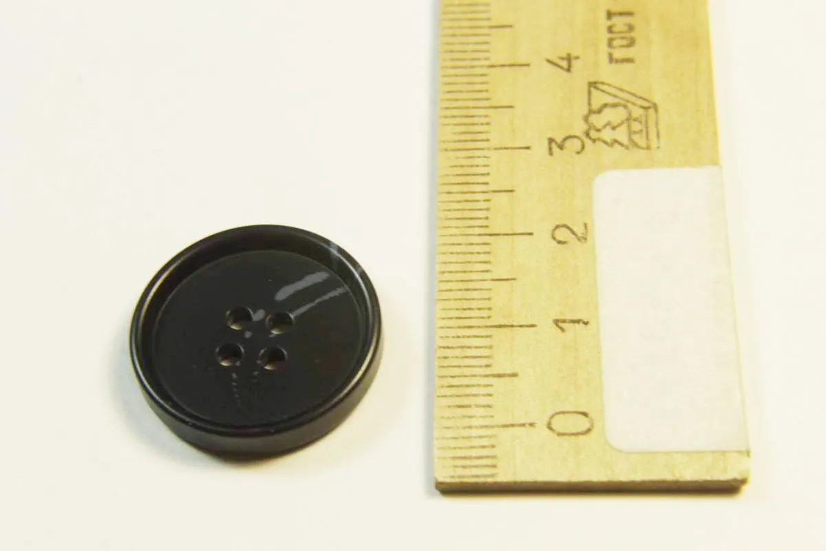 Пуговица пластмассовая, четыре прокола, цвет тёмно-синий с голубым штрихом, диаметр 23 мм