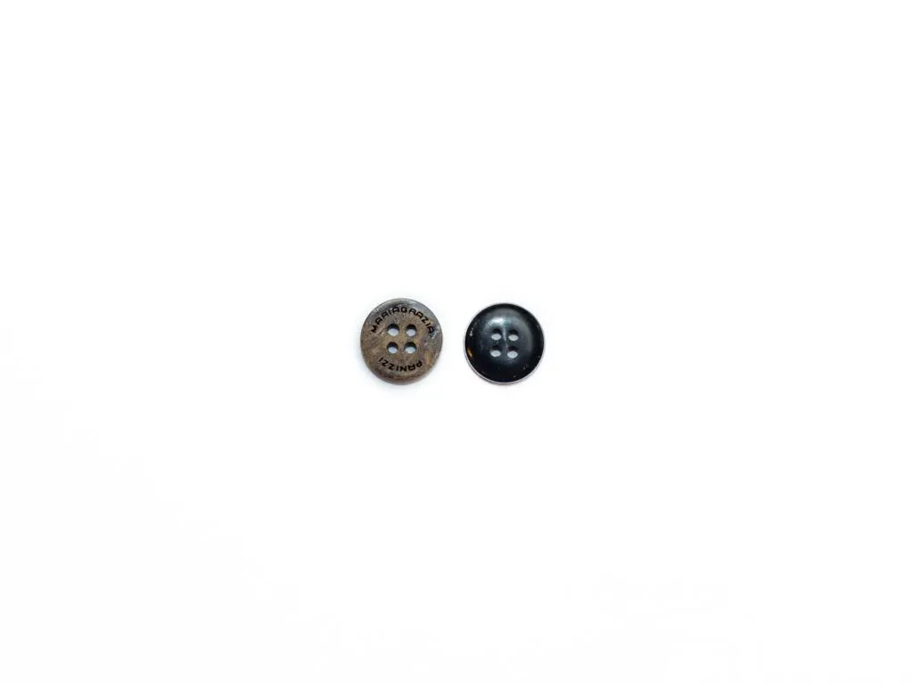 Пуговица пластмассовая, костюмная, дерево на пластике, 4 прокола, чёрно-коричневая, диаметр 12 мм