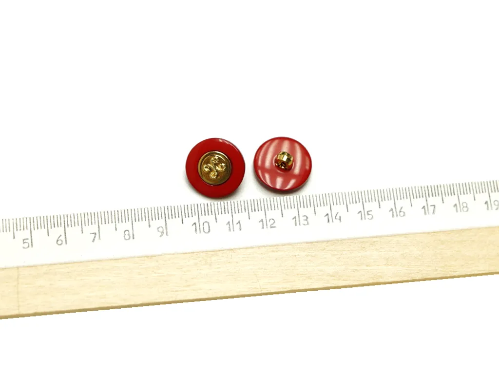 Пуговица пластмассовая на ножке "ШАНЕЛЬ", цвет красный с золотом, диаметр 17 ммфото (фото 2)