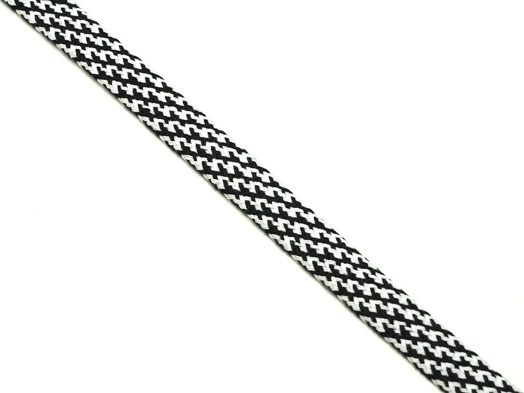 Шнур плоский, плетеный, чёрно-белая клетка, ширина 15 мм