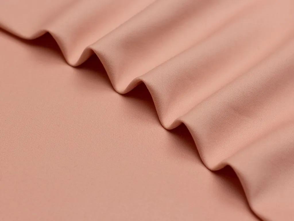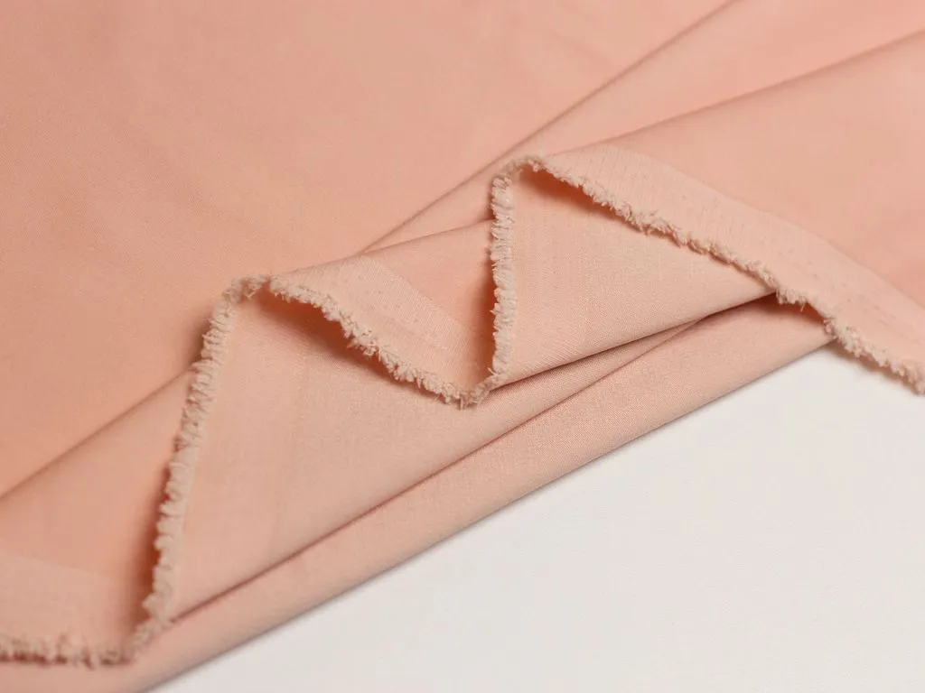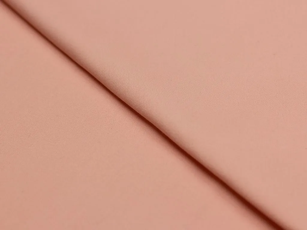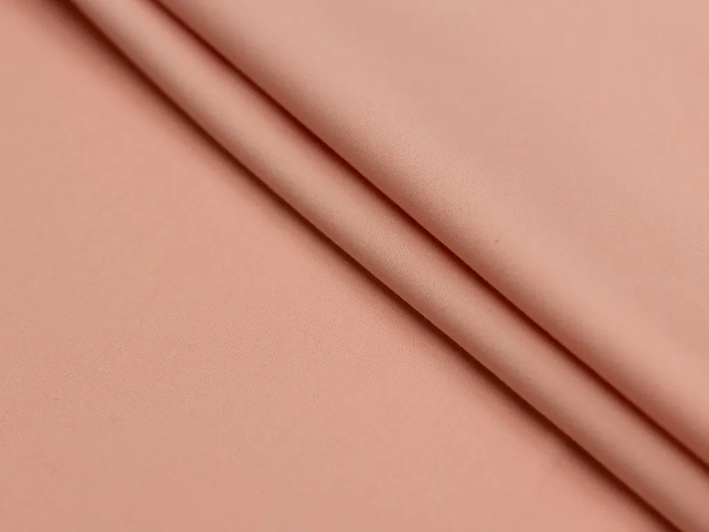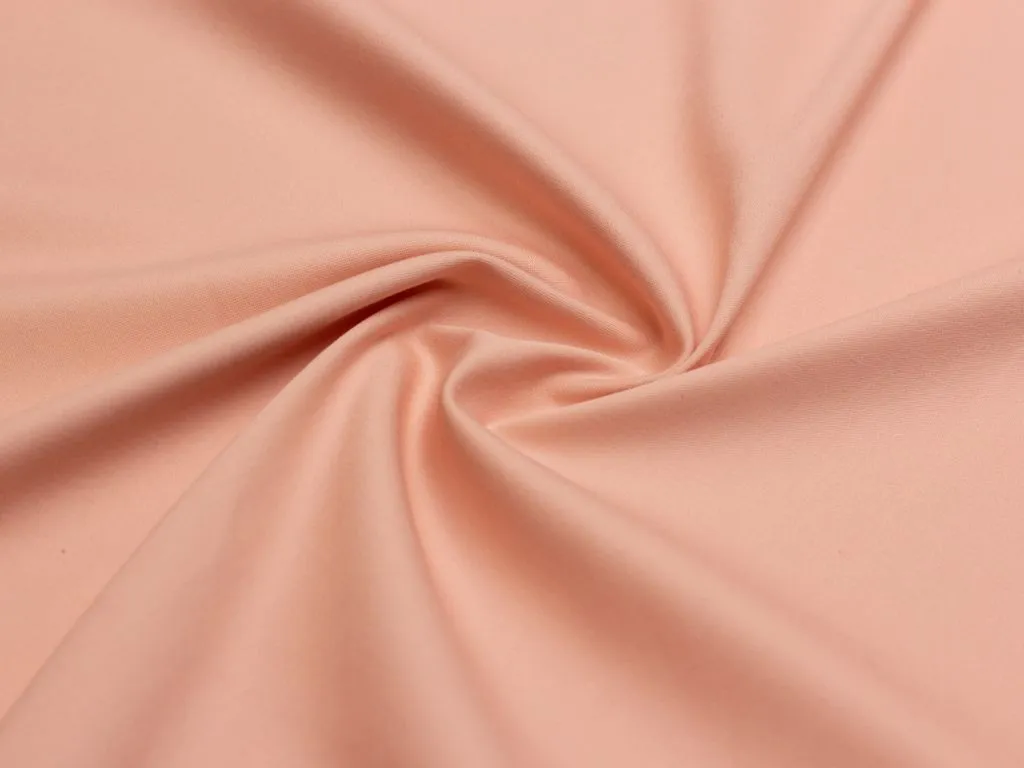 Однотонный итальянский бенгалин персикового цвета, полотно выполнено из хлопка с добавлением эластана. Ткань плотноватая, слегка эластичная, прочная, воздухопроницаемая, не просвечивает, приятная на ощупь.