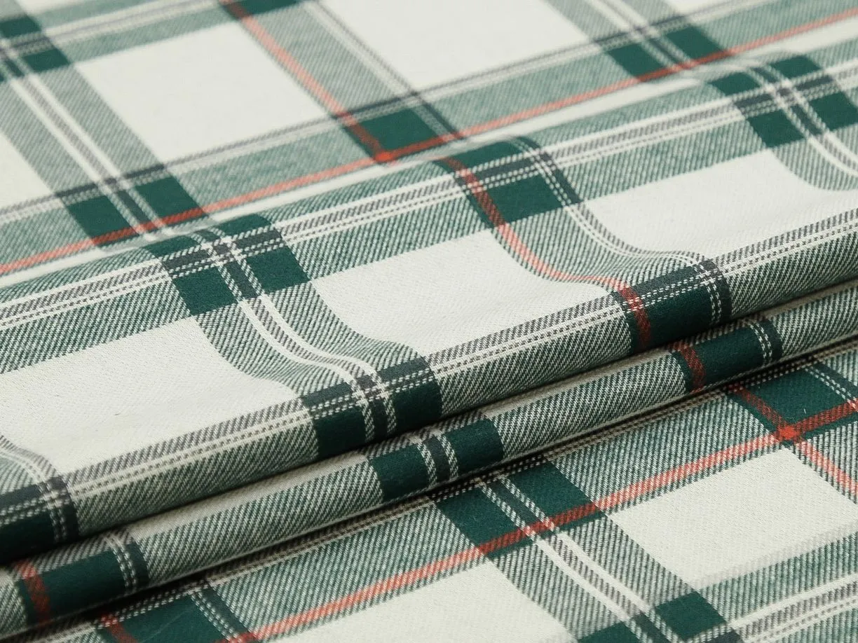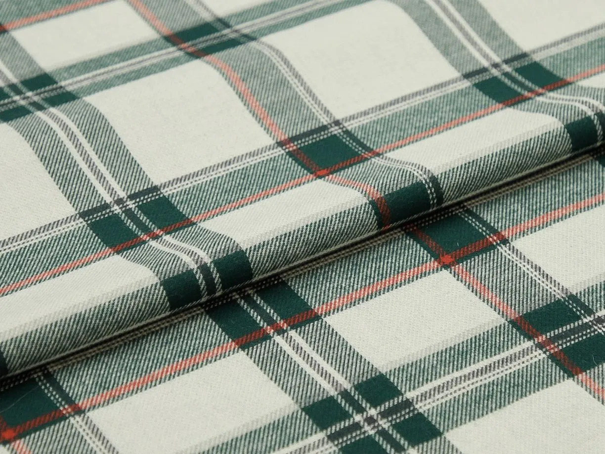 Костюмная ткань, фланель в клетку, в зелёно-красных цветах