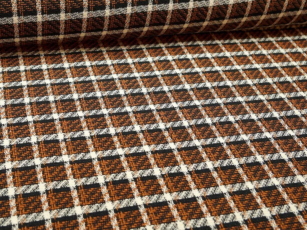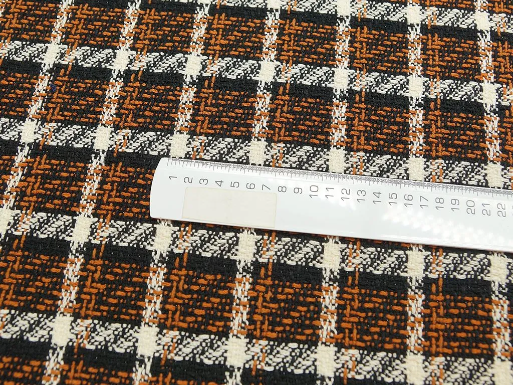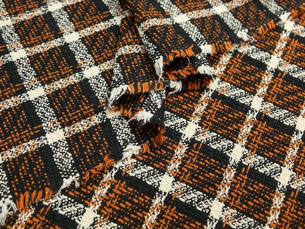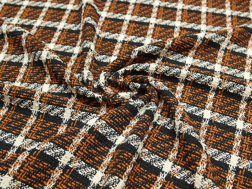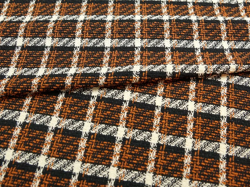 Костюмная ткань крупного плетения, коричнево-белая клетка на черном