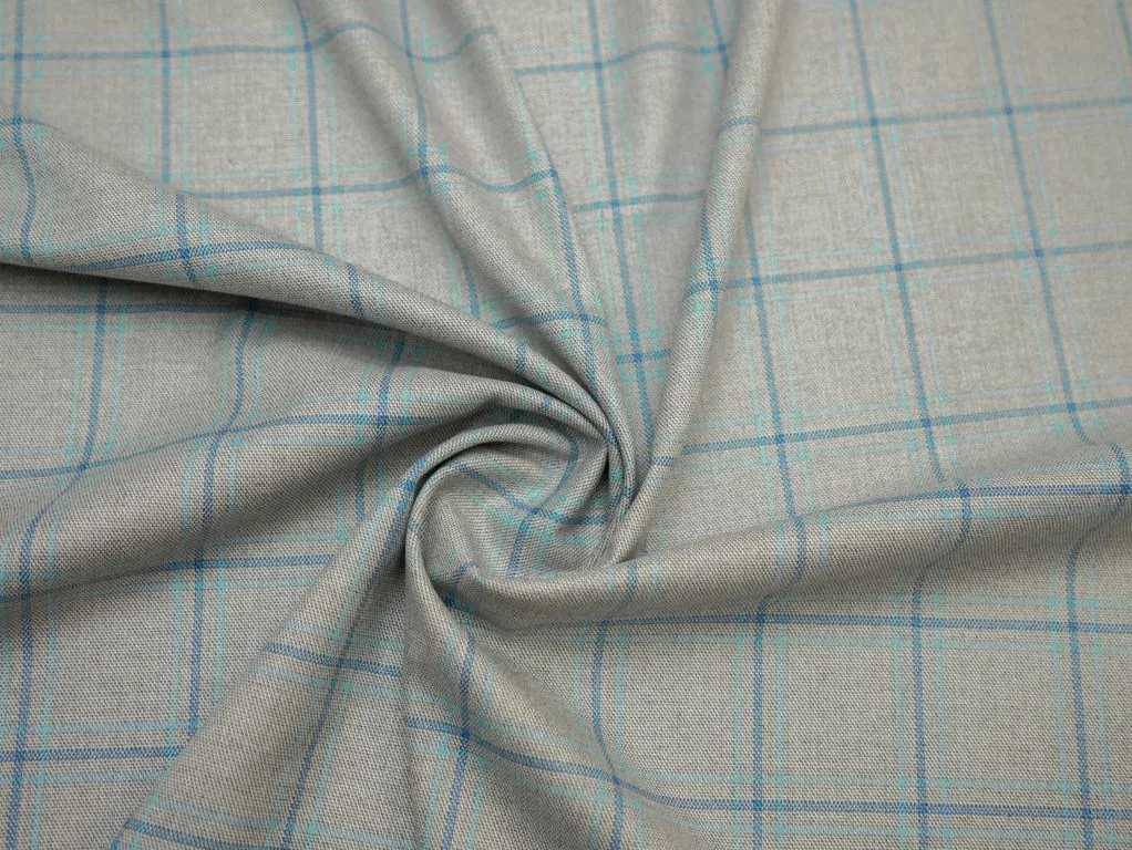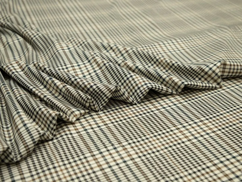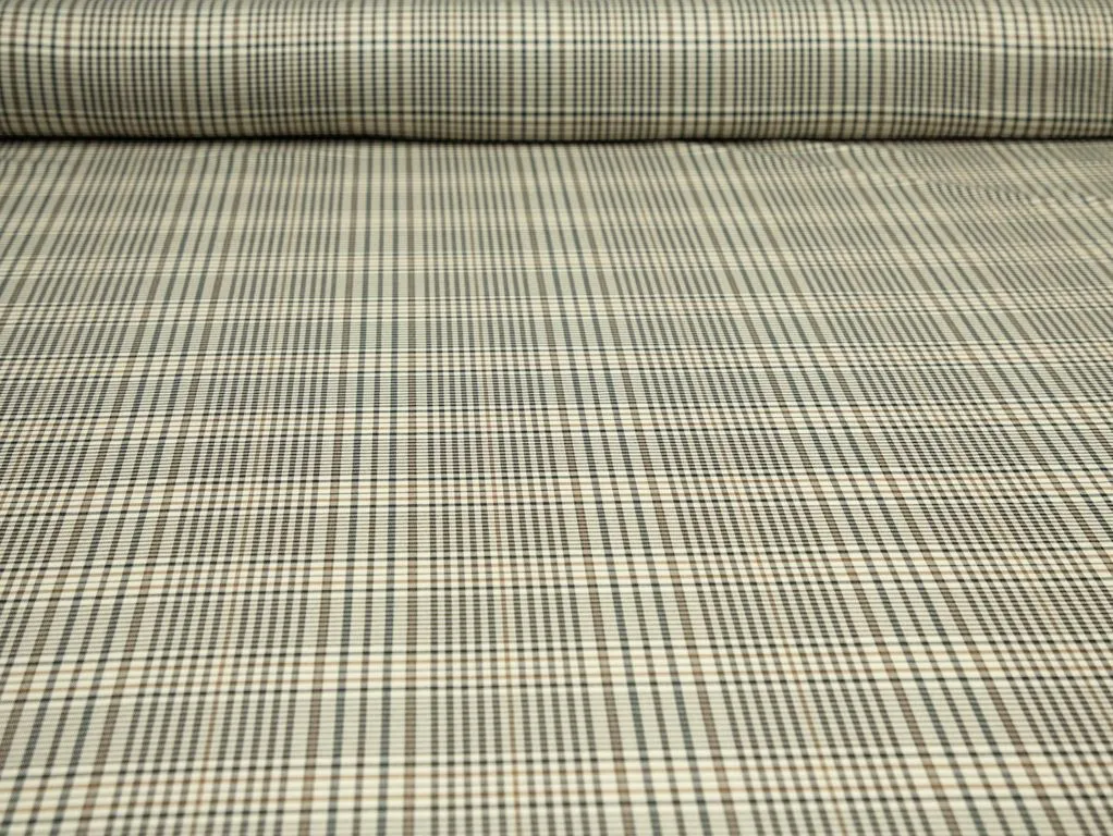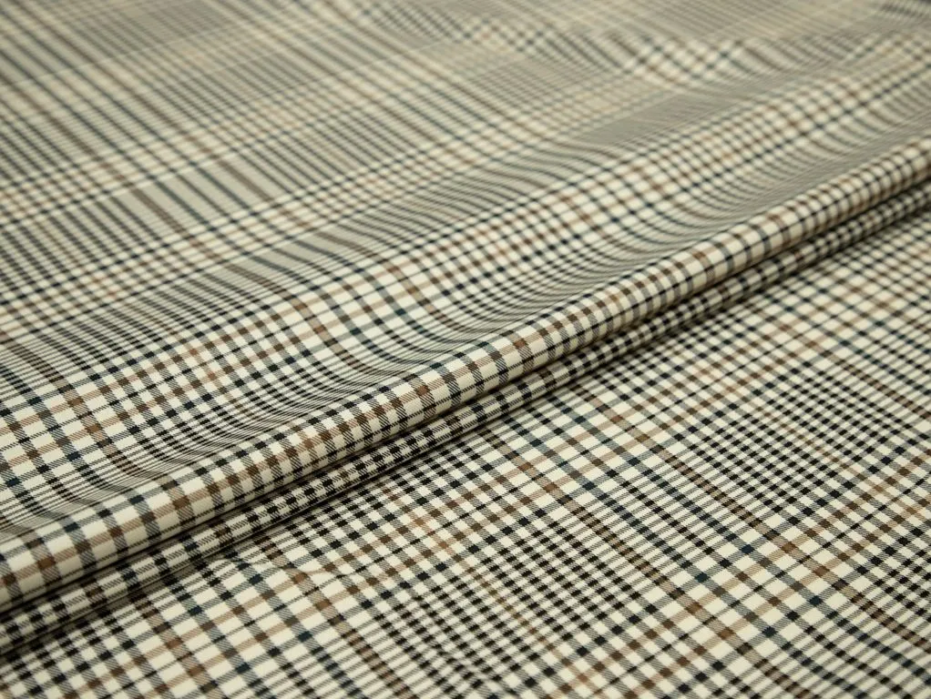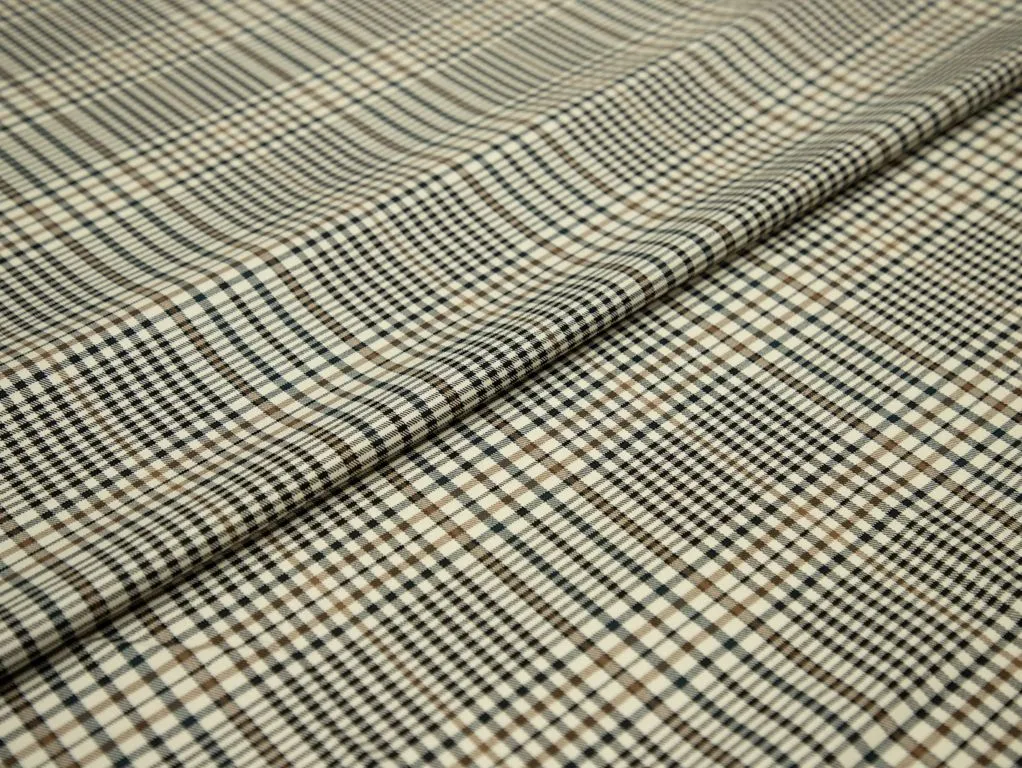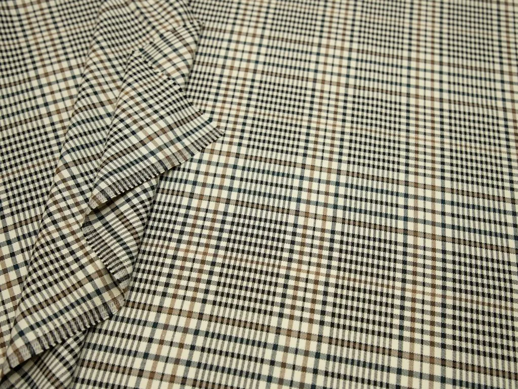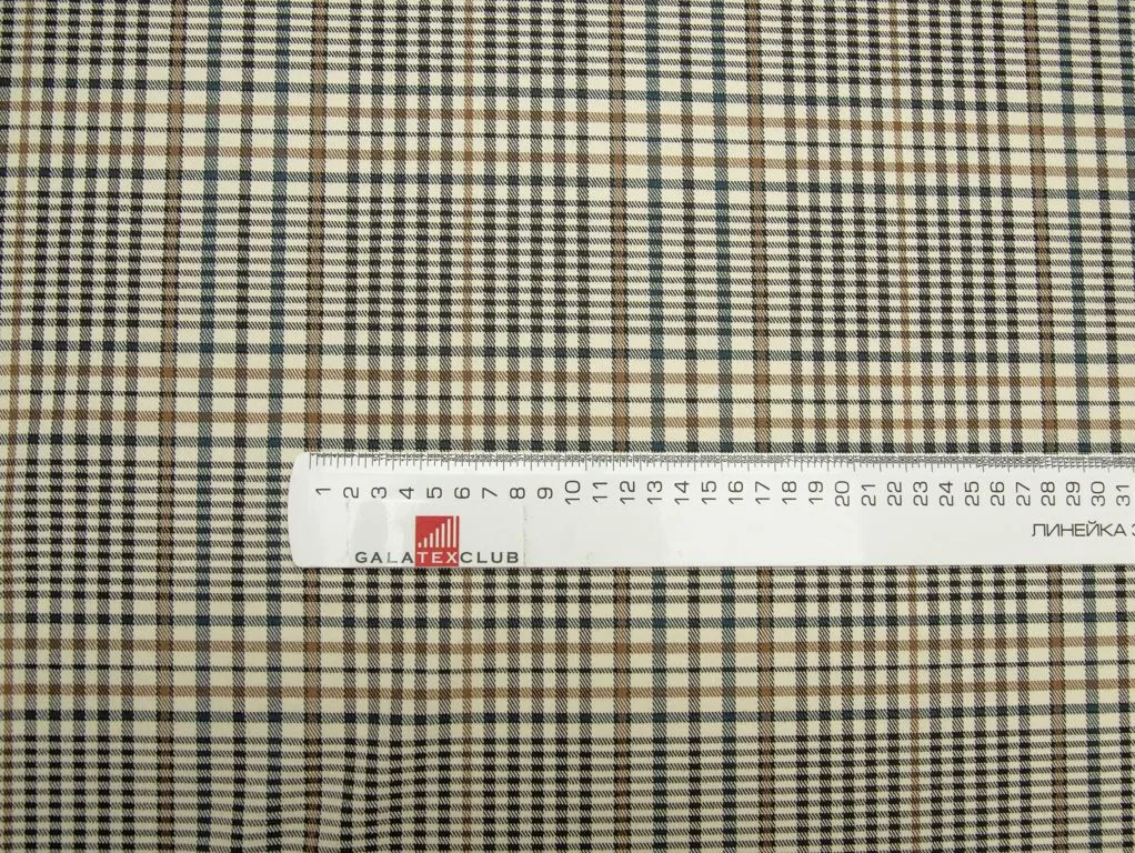 Костюмная ткань в сине-коричневую клетку, цвет фона кремовый