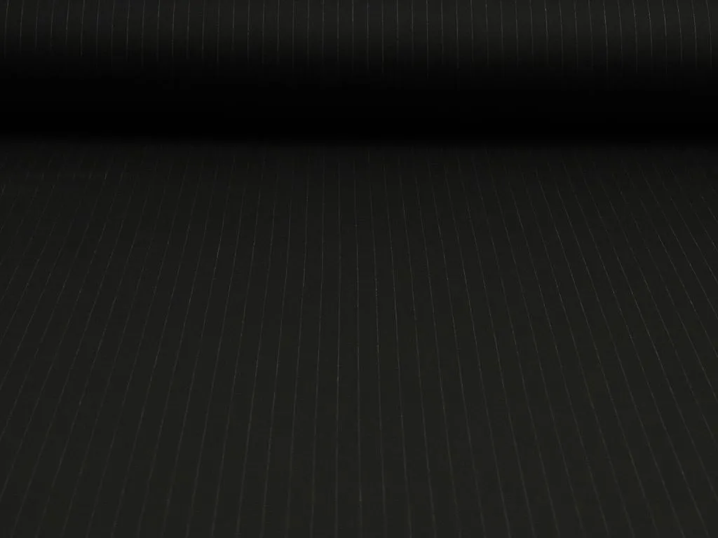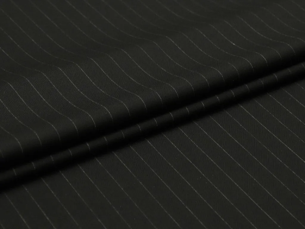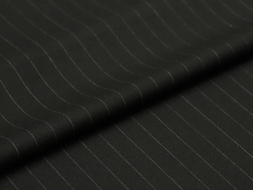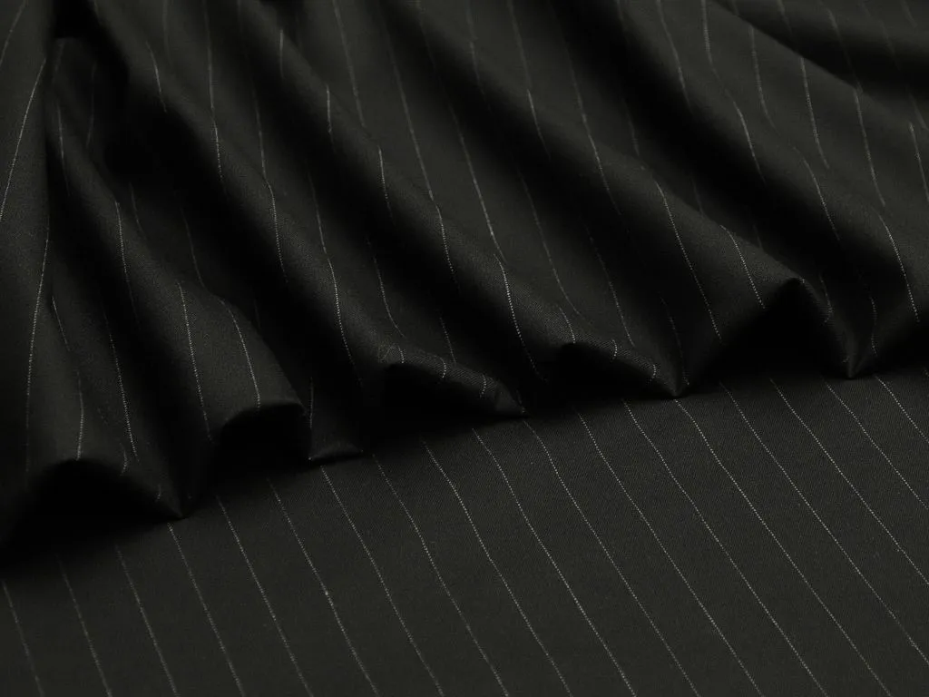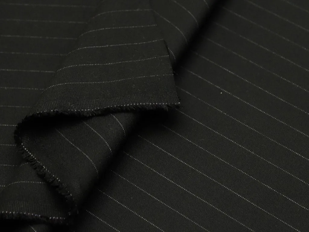 Костюмно-плательная ткань, чёрного цвета в вертикальную тонкую белую полоску
