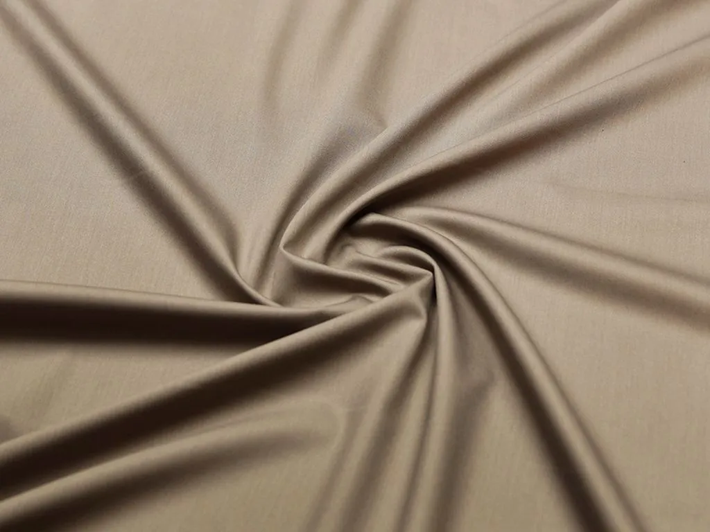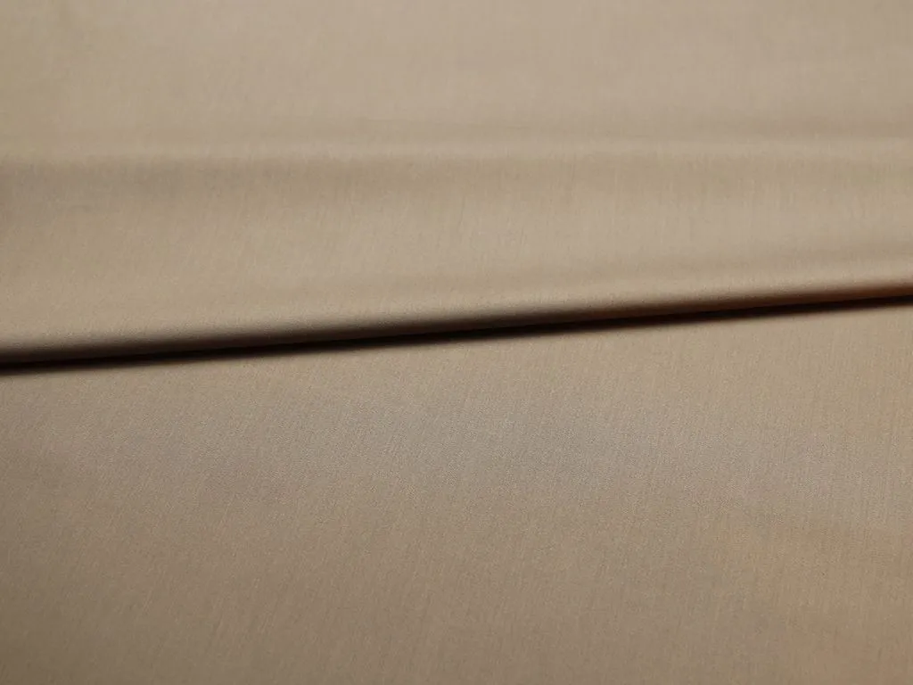 Легкая костюмно-плательная ткань из поливискозы с добавлением эластана, цвет капучино. Материал тактильно очень приятный и мягкий, тонкий по плотности, с низкой сминаемостью и хорошо драпируется. Подойдет для пошива офисной и повседневной одежды, особенно в летний сезон: костюмы, платья, брюки, шорты, юбки и жакеты.