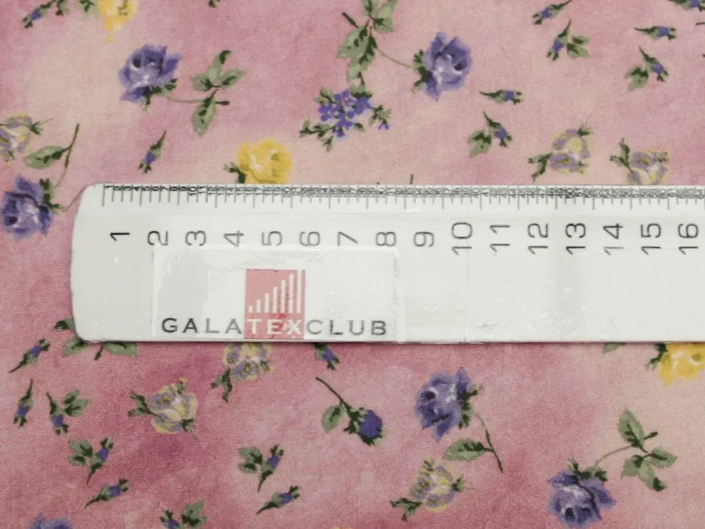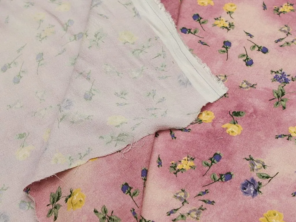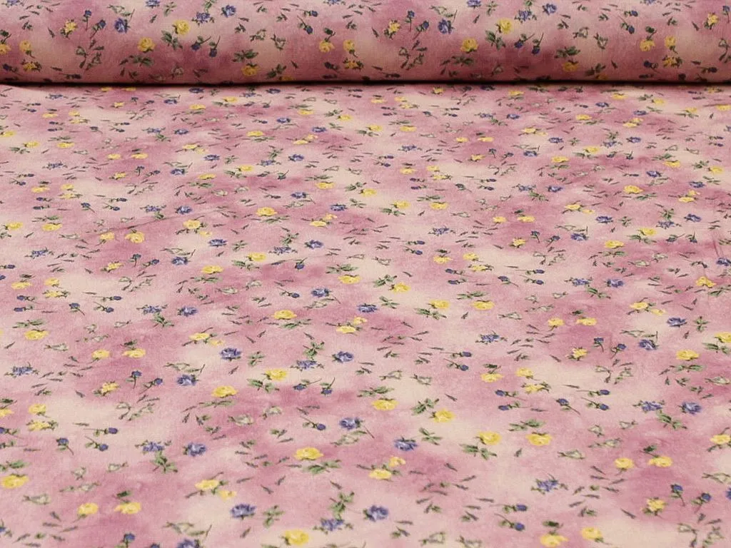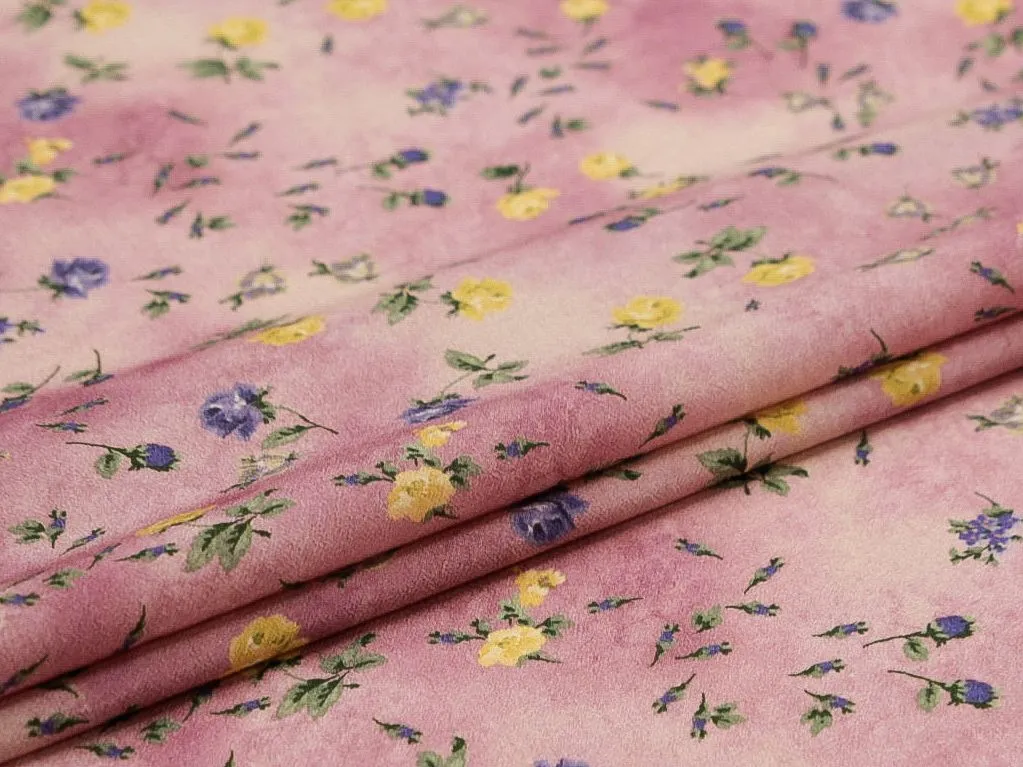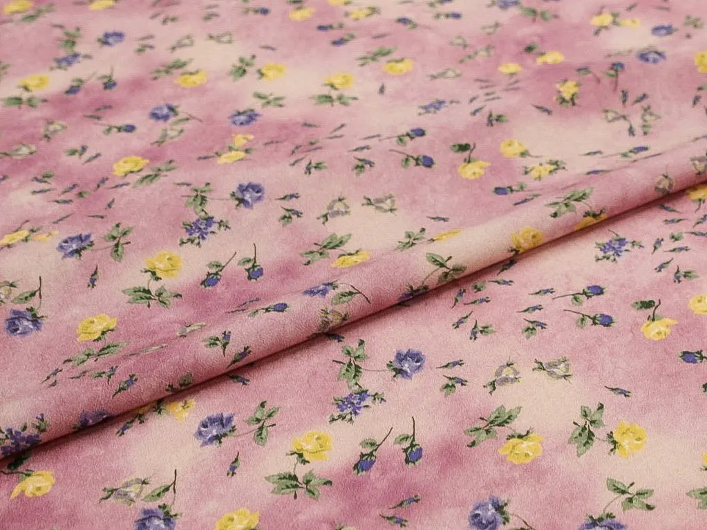 Креп мелкие желтые цветы на розовом фоне