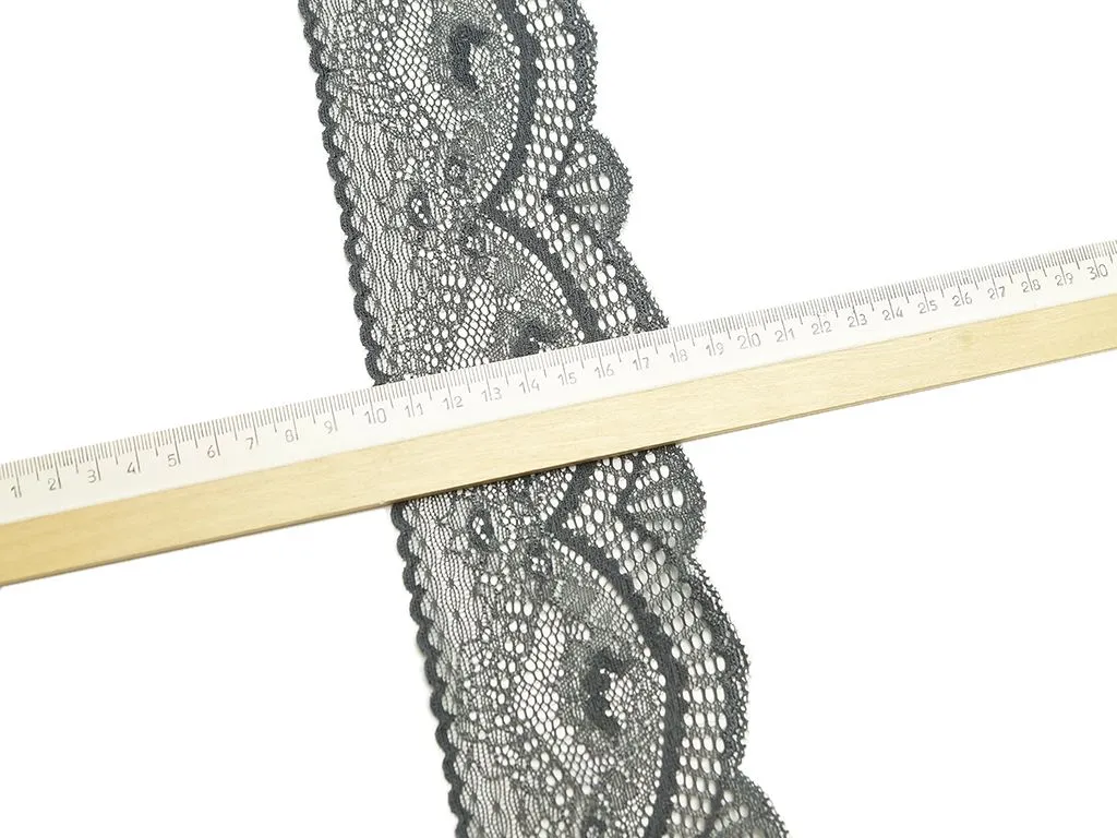 Кружево тёмно-серого цвета, ширина 80 мм
