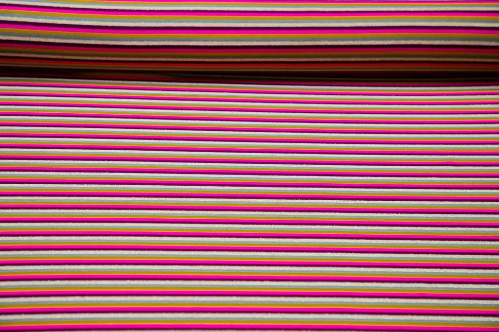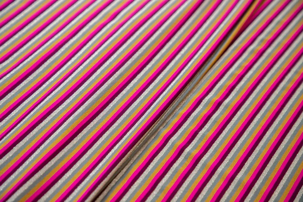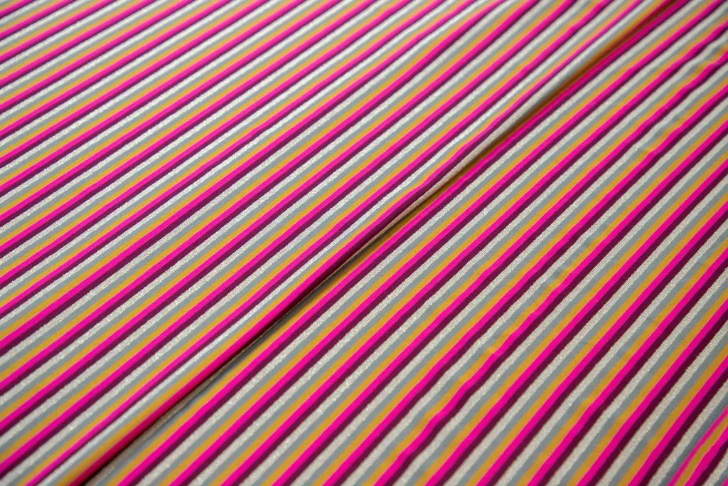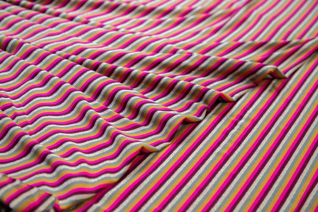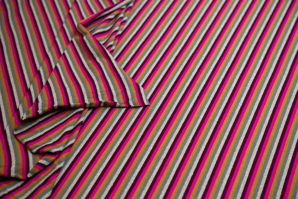 Кулирная гладь в полоску с люрексом, розово-горчичный