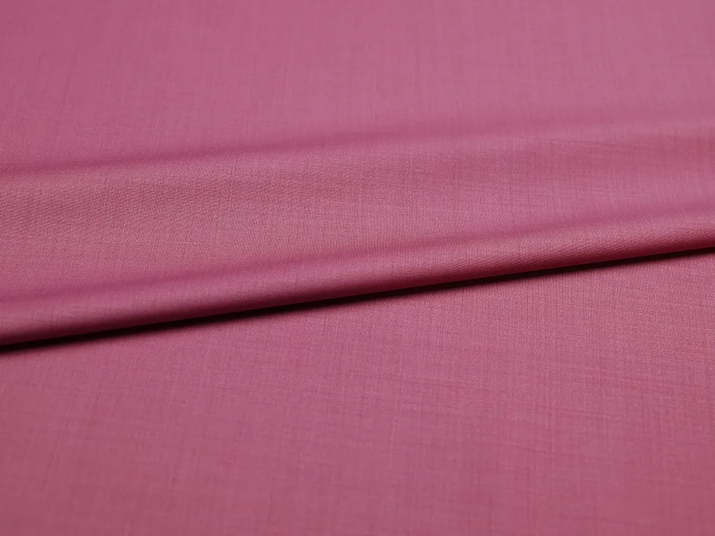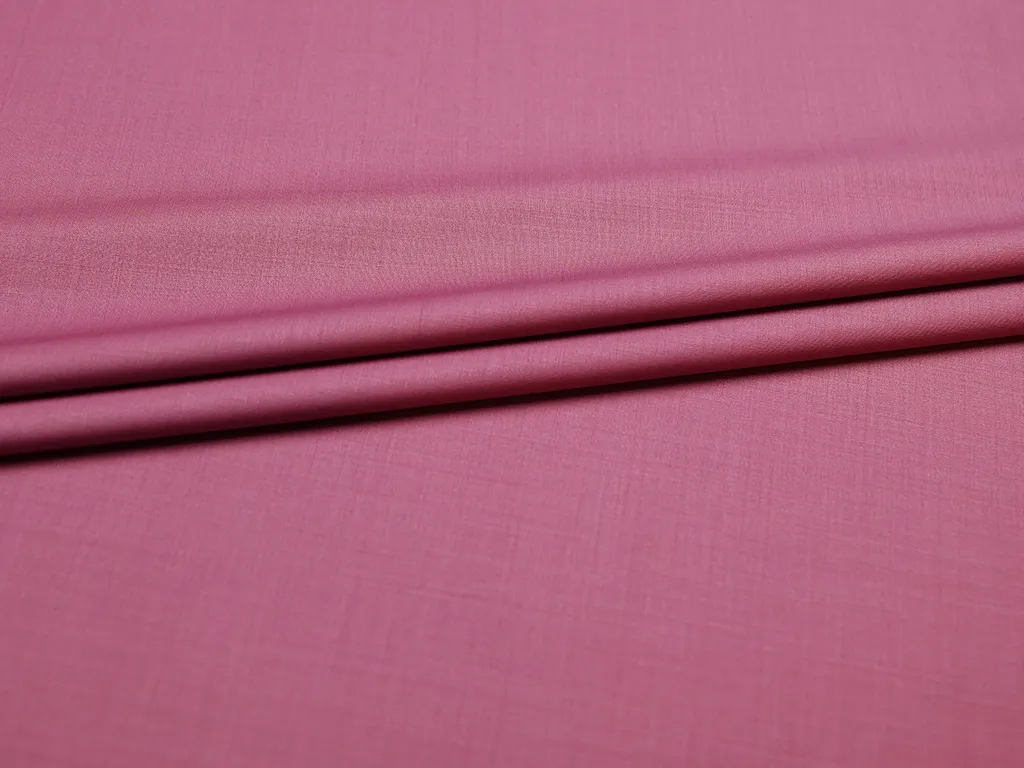 Двухсторонняя полушерстяная костюмная ткань бруснично-розового цвета. Материал с добавлением нитей эластана костюмной плотности, не сухой и не просвечивает, держит тепло, достаточно комфортный и приятный на ощупь. Костюмная ткань высокого качества и отлично подойдет для пошива офисной и повседневной одежды: платье, костюм, юбка или брюки.