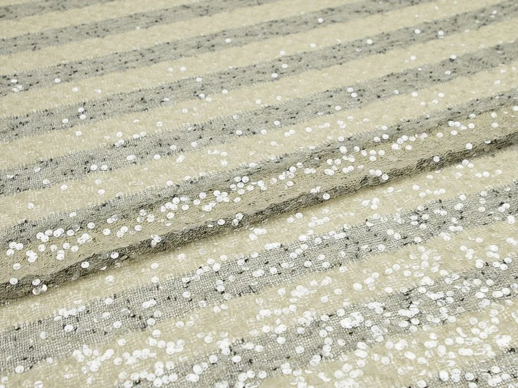 Пайетки на трикотажной основе, в широкую чёрно-бежевую полоску