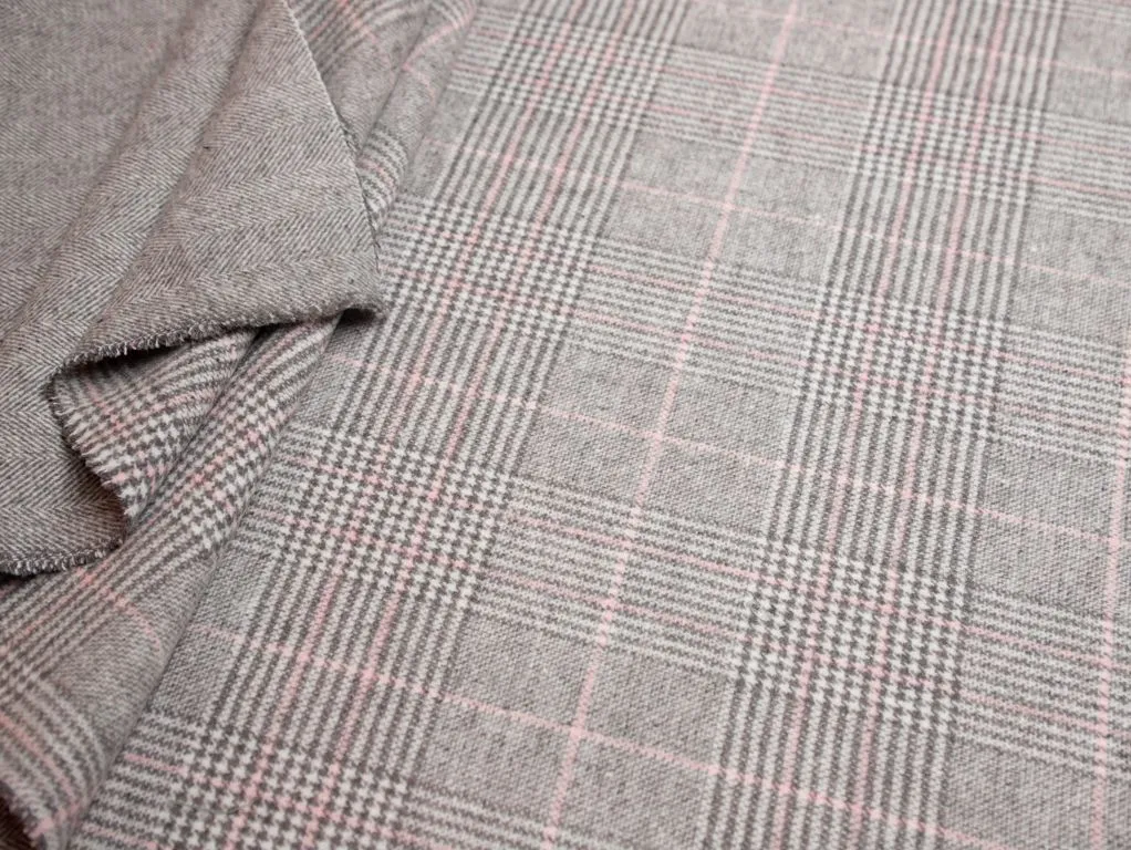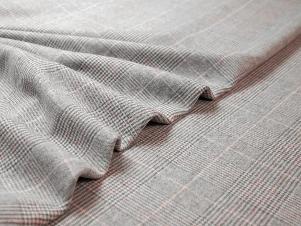 Двухсторонняя пальтовая ткань в клетку, цвет серо-белый