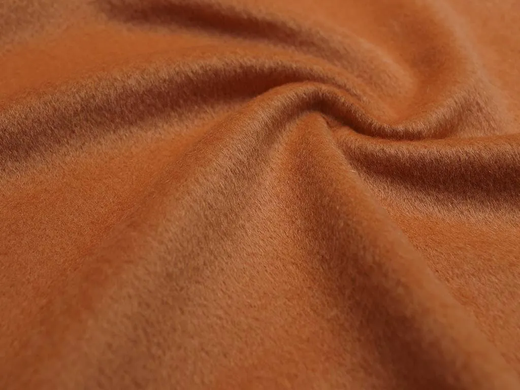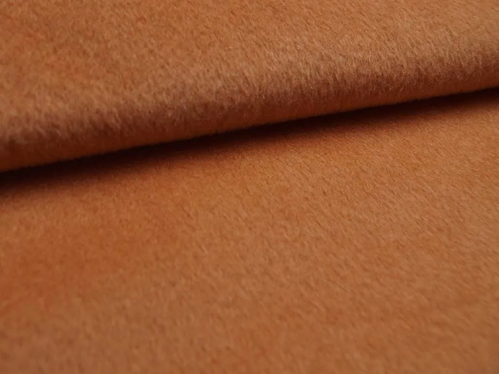 Пальтовая ткань с коротким и плотным ворсом, со светло-рыжим элегантным оттенком, пластичная и приятная на ощупь. Подходит для пошива пальто и верхней одежды.