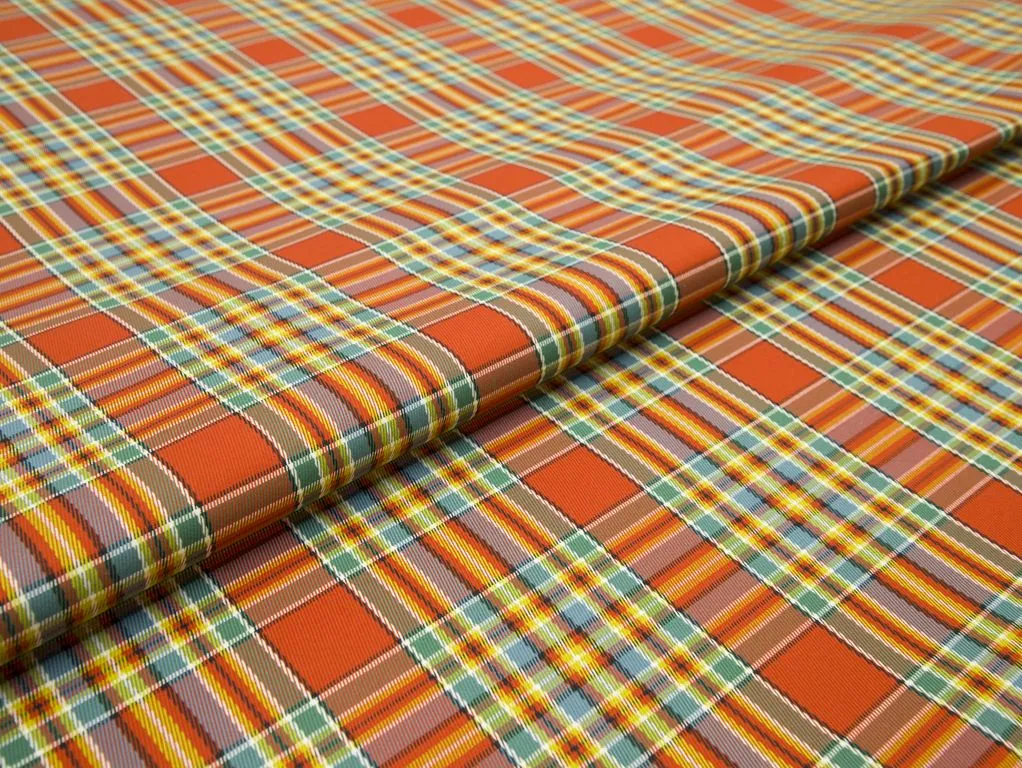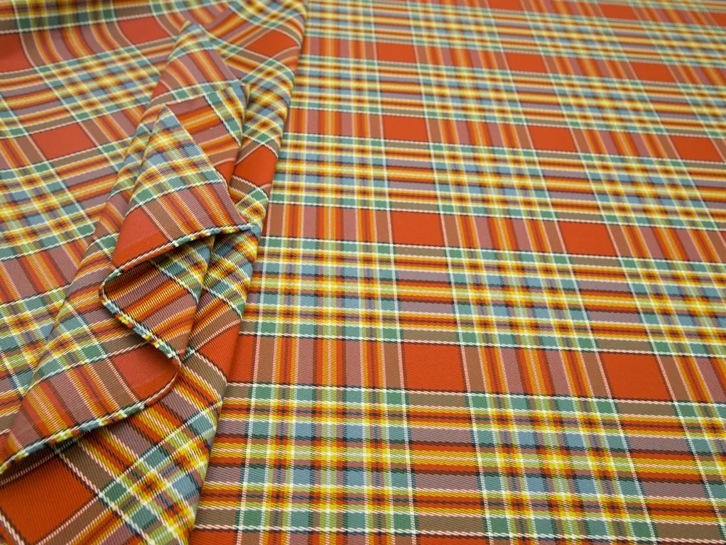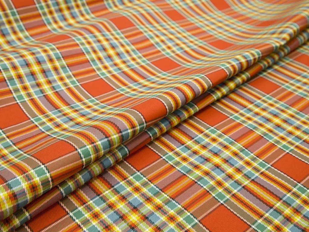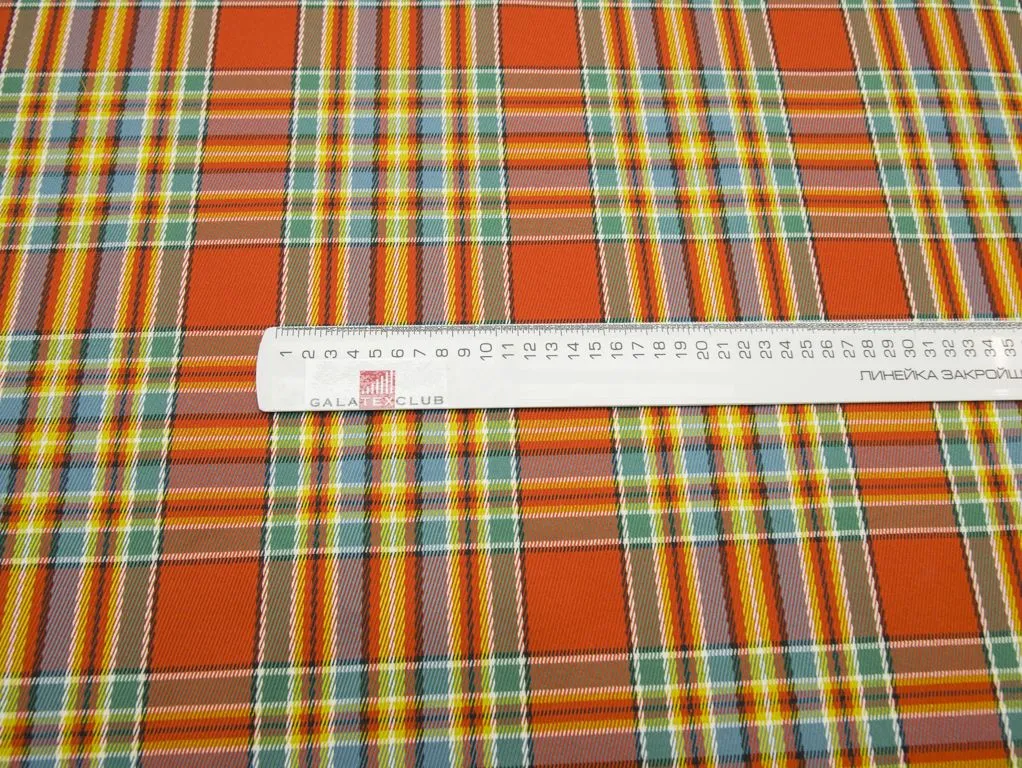 Плащевая ткань на тренч, в клетку, цвет оранжево-бирюзовый