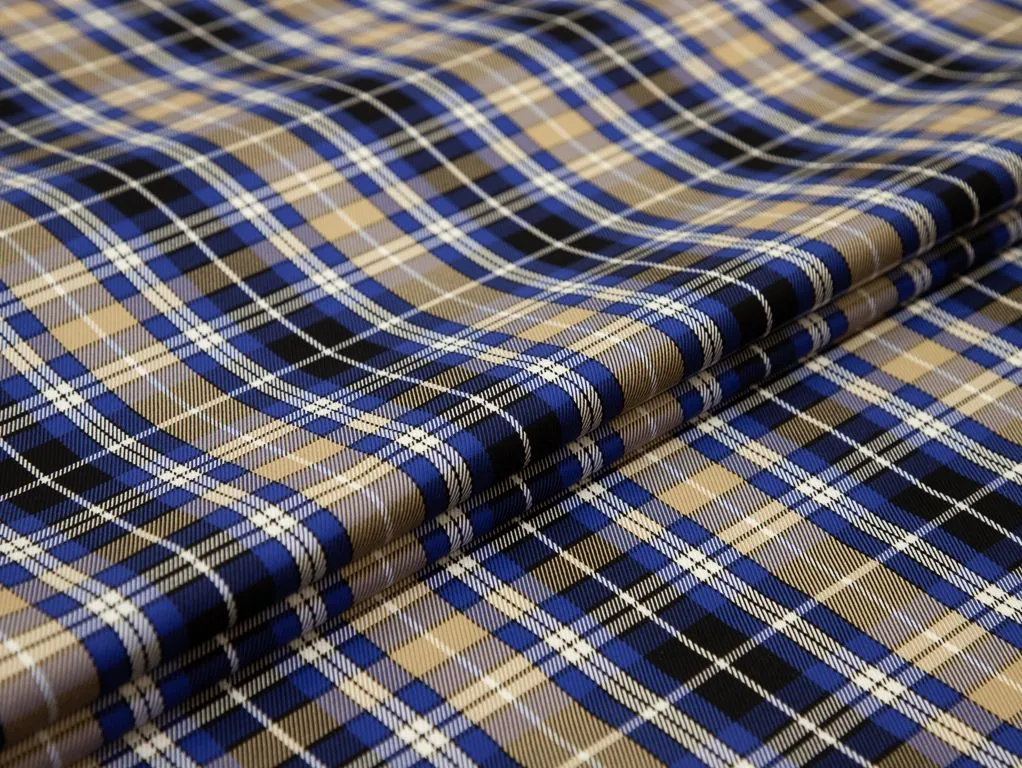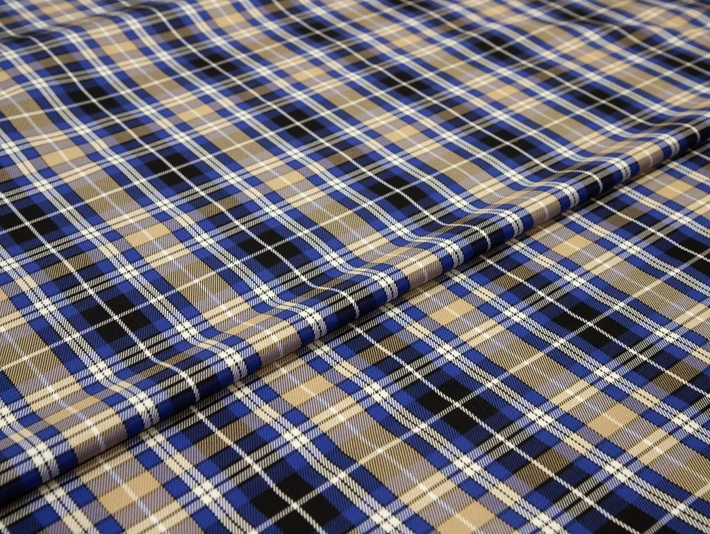 Плащевая ткань на тренч, в клетку, цвет сине-бежевый