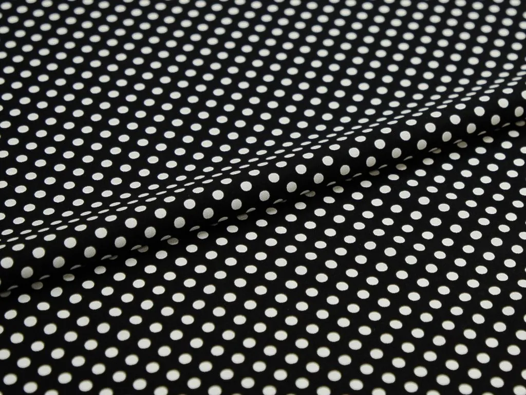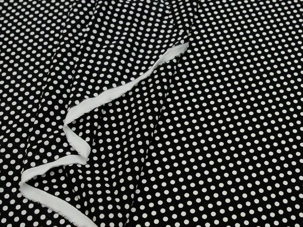 Плательная ткань мелкий белый горошек на черном фоне