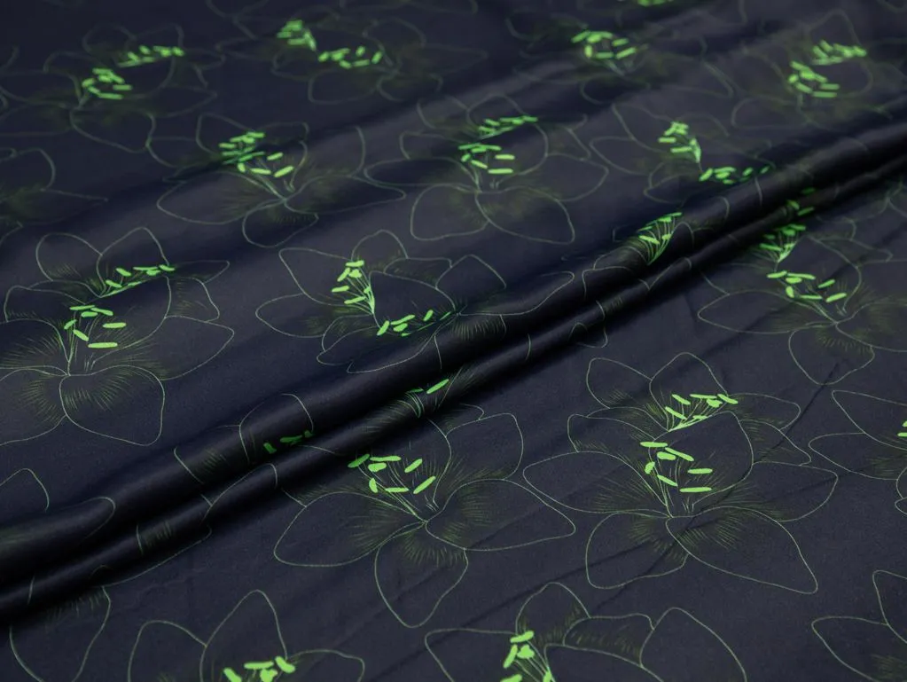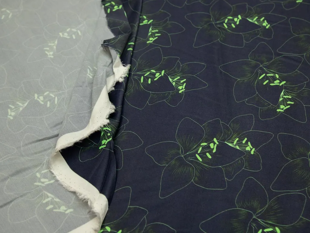 Плательная ткань с тонким цветочным рисунком, цвет зелено-синий