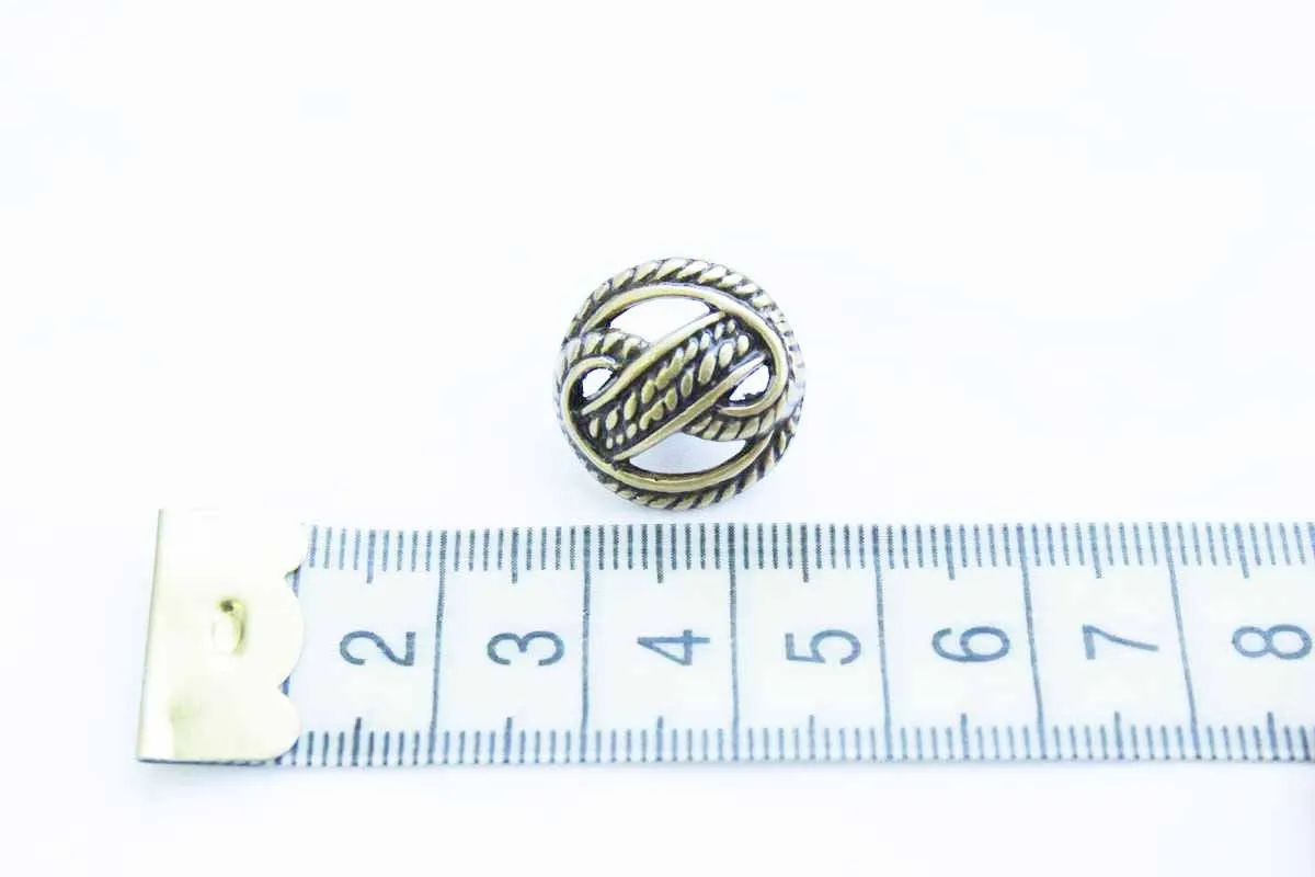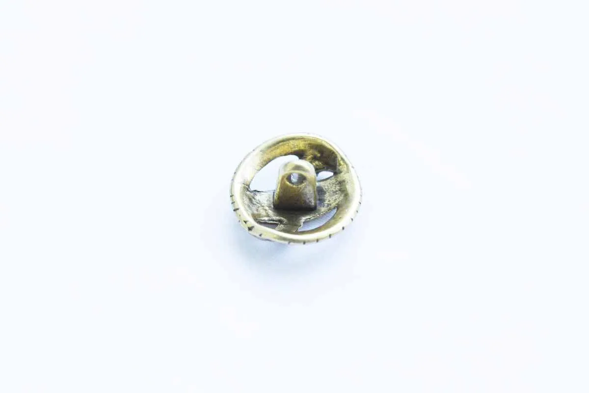 Пуговица металлическая, на ножке, "УЗЕЛ", золотого цвета с чернением, диаметр 18 мм
