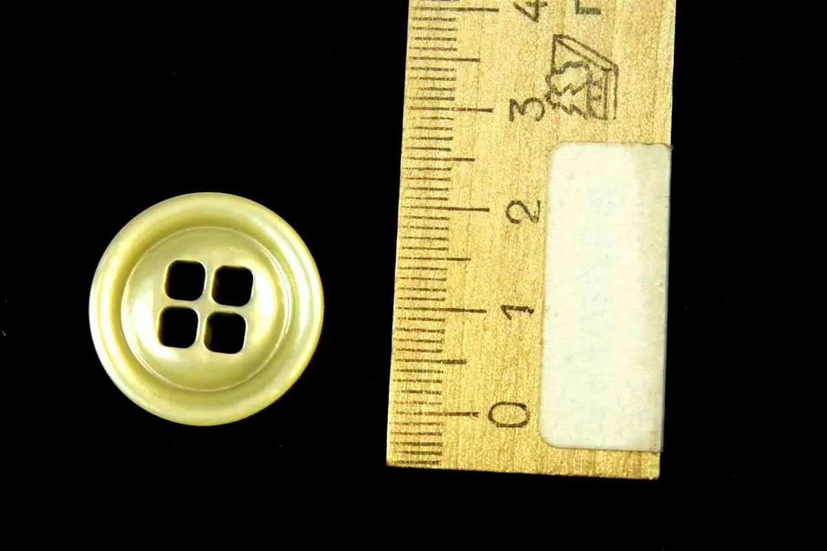 Пуговица пластмассовая, четыре прокола, бежевый перламутр, диаметр 23 мм