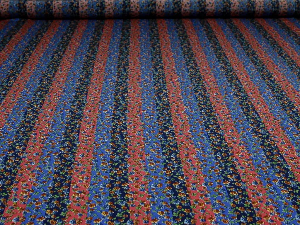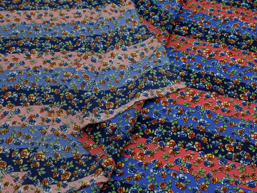 Блузочно-плательный шелк креповый "Розочки" на полосатом фоне