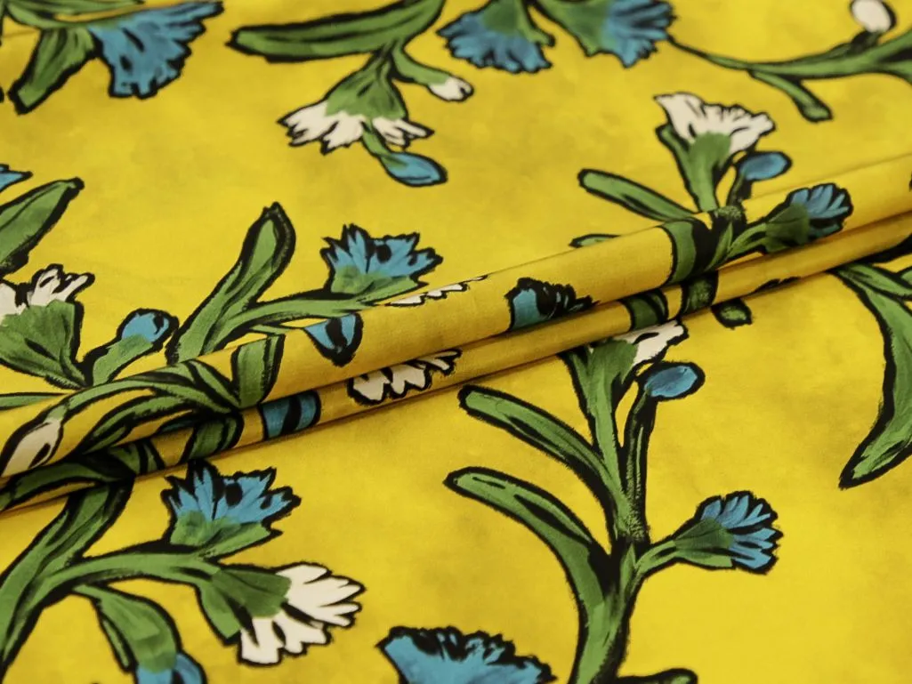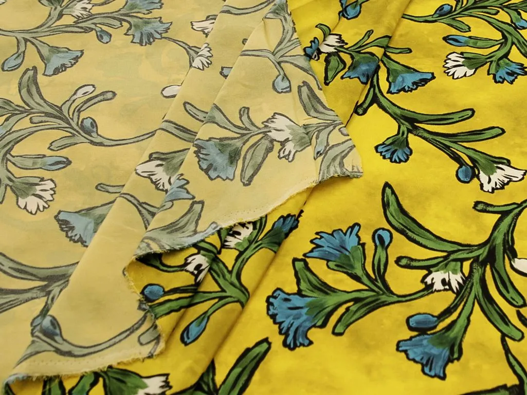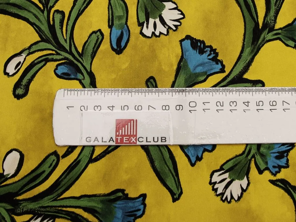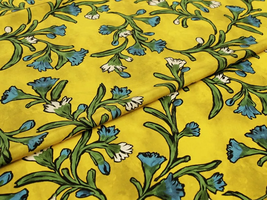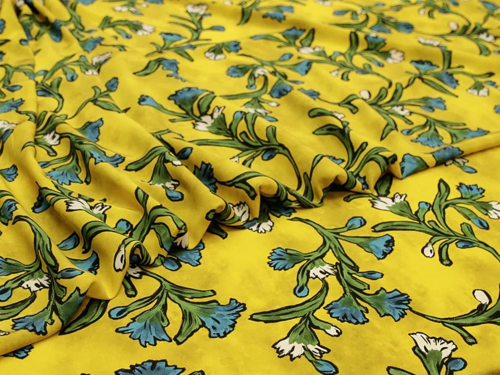Блузочно-плательный шелк креповый "Цвета" на желтом фоне