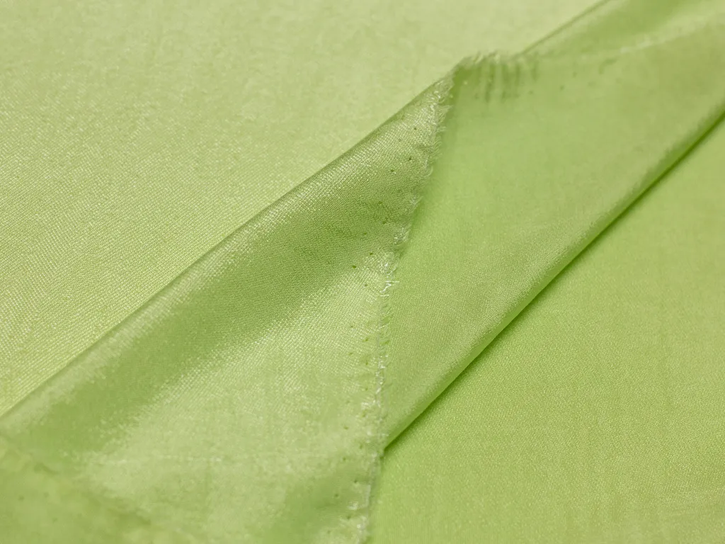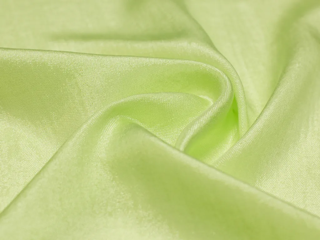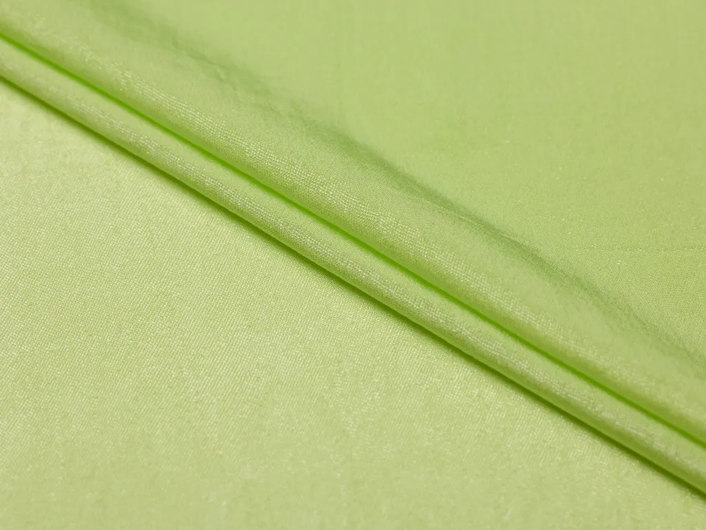 Однотонный шелк нежного салатового цвета с добавлением металлической нити. Ткань легкая, приятная на ощупь, слегка просвечивает и прекрасно драпируется. Идеально подходит для пошива платьев, блузок и костюмов.