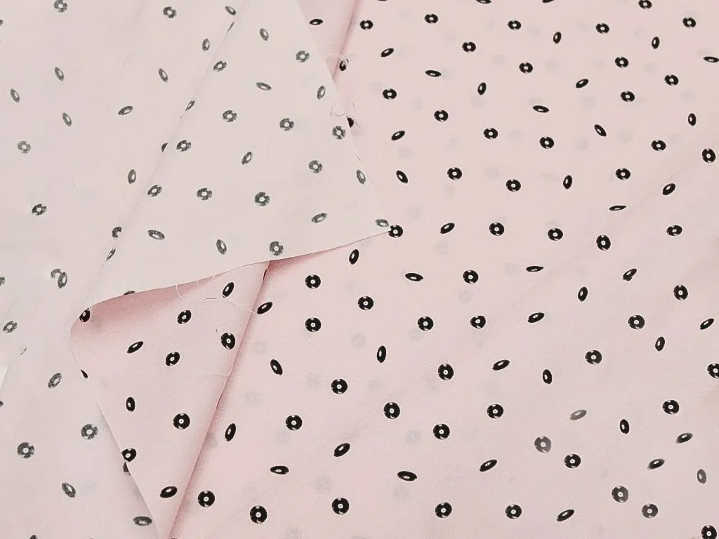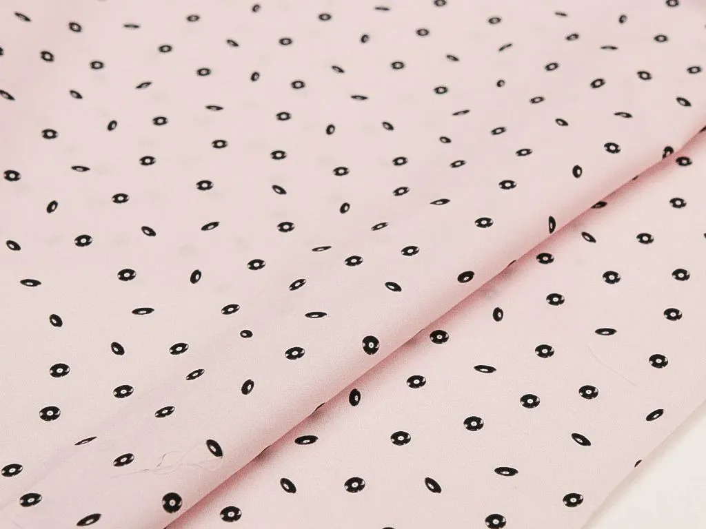Штапель с рисунком "Пуговки" в розово-черном цвете