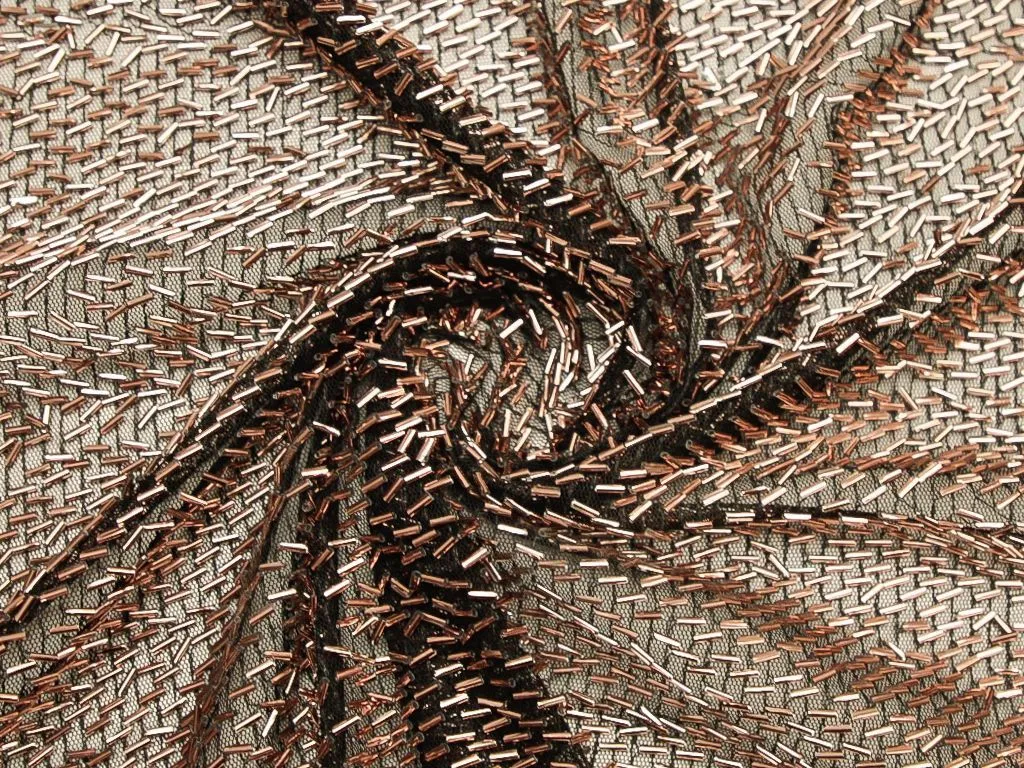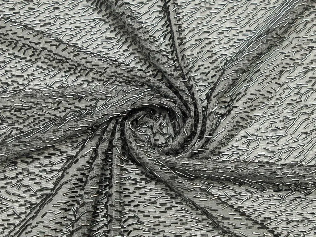 Стеклярус, угольного цвета на черной сетке