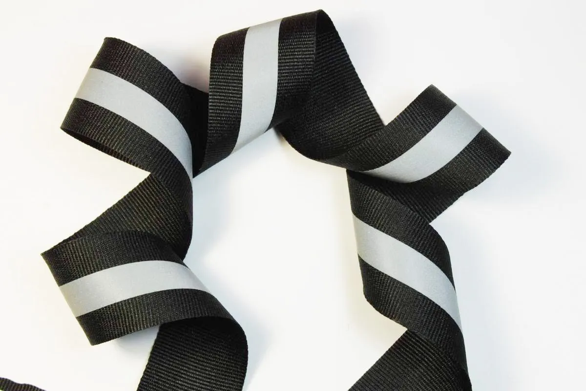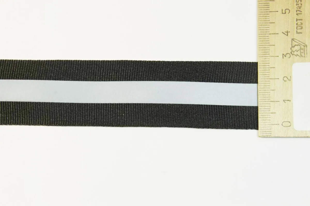 Тесьма светоотражающая, черного цвета с серой полоской 10мм, ширина 30 мм