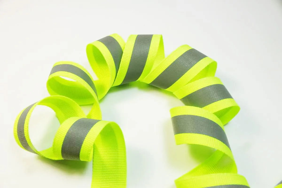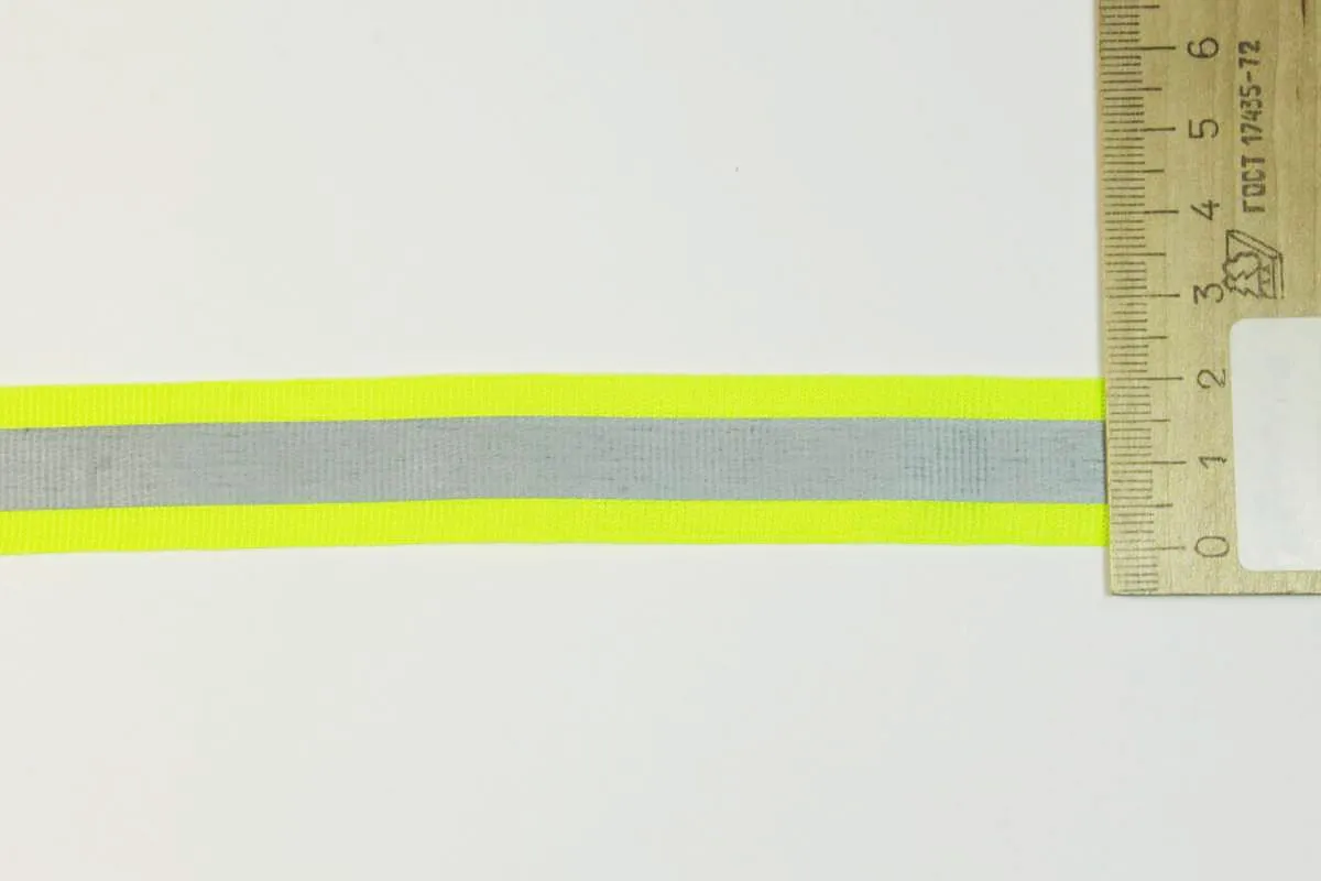 Тесьма светоотражающая, кислотно-желтого цвета с серой полоской 10мм, ширина 20 мм
