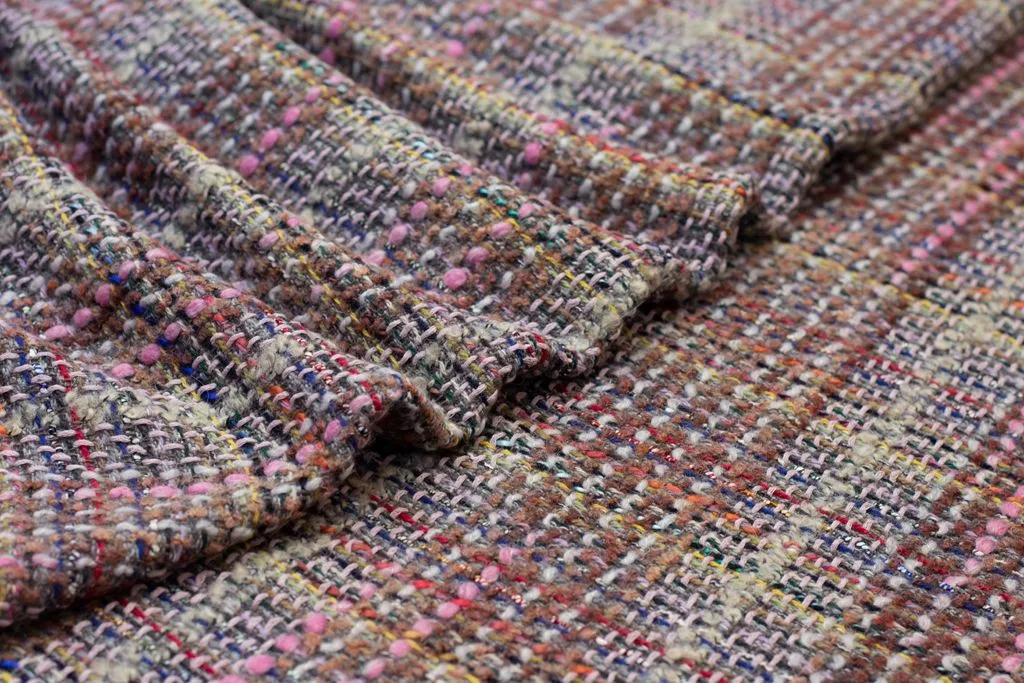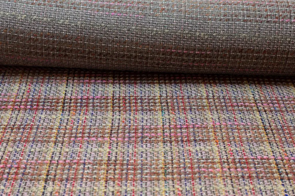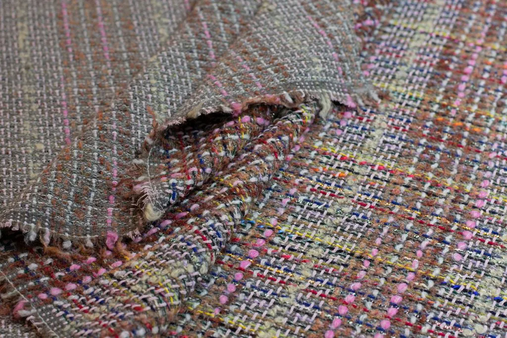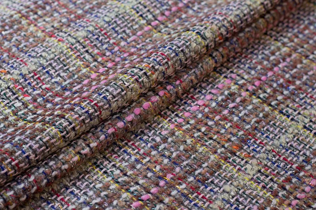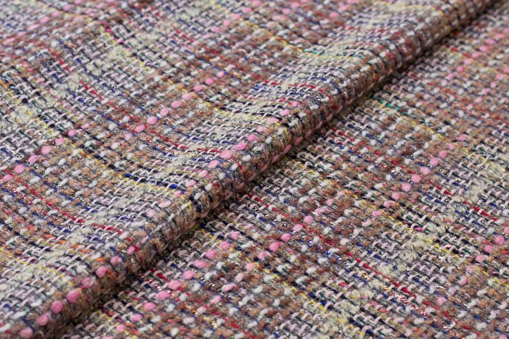 Двухсторонняя твидовая костюмная ткань, цвет розово-коричневый мультиколор
