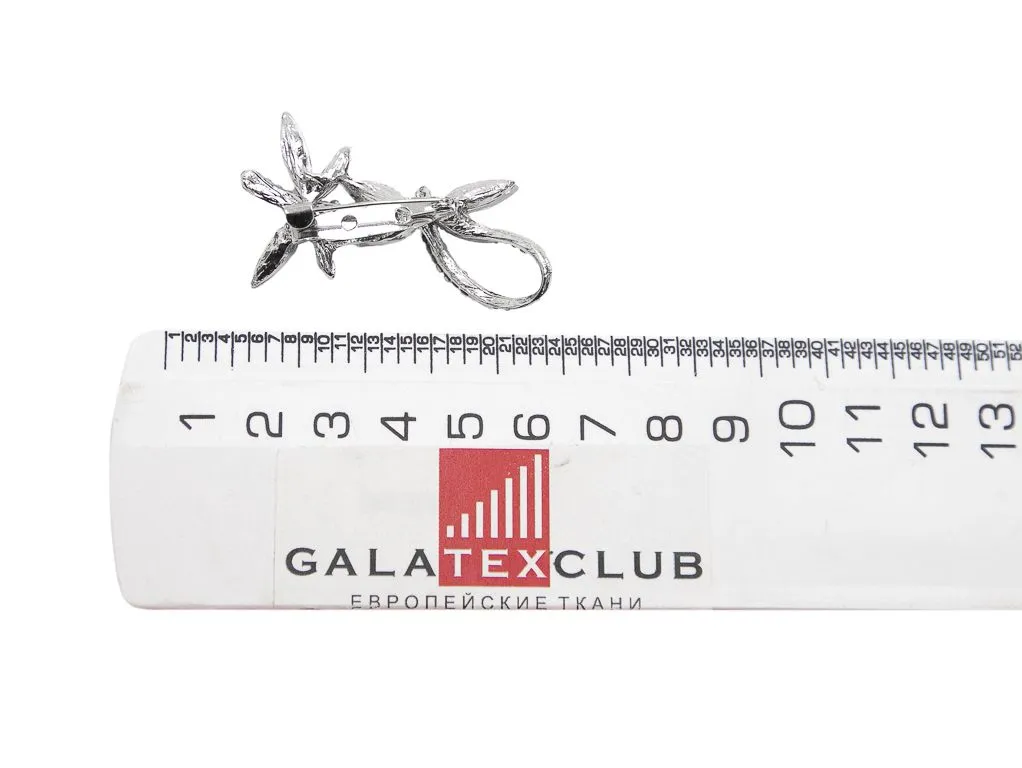 Брошь "МОТЫЛЬКИ" серебряного цвета со стразами, 50*27 мм