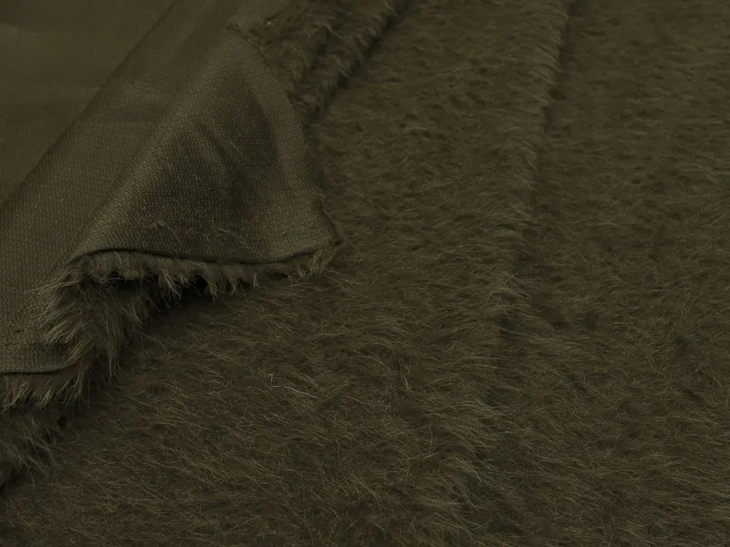 Искусственный мех на трикотажной основе, с ворсом средней длины, коричневого цвета