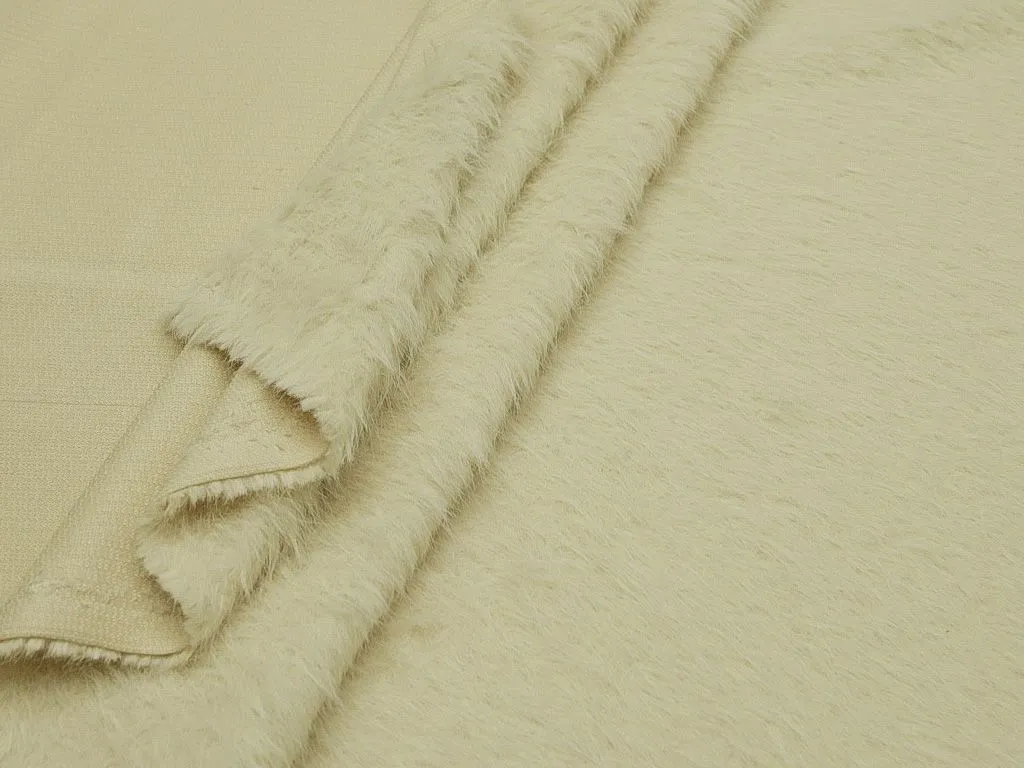 Искусственный мех на трикотажной основе, с ворсом средней длины, молочного цвета