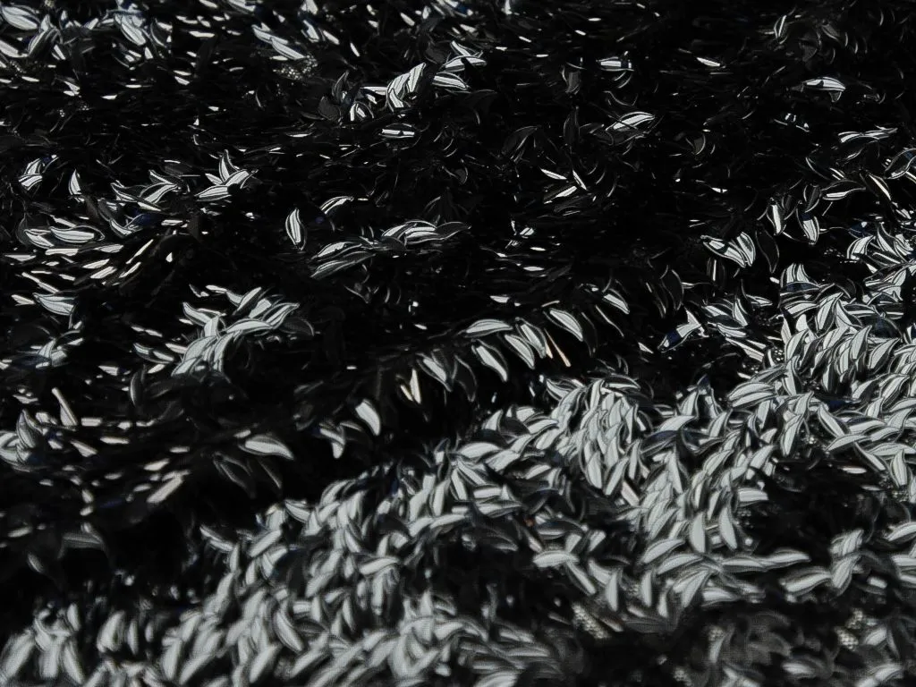 Нарядная плательная ткань с пайетками, в стиле "Кабаре", чёрно-графитового цвета
