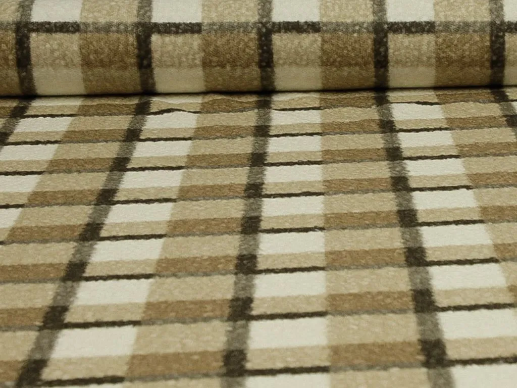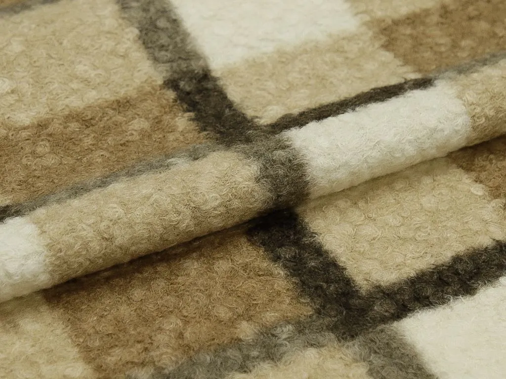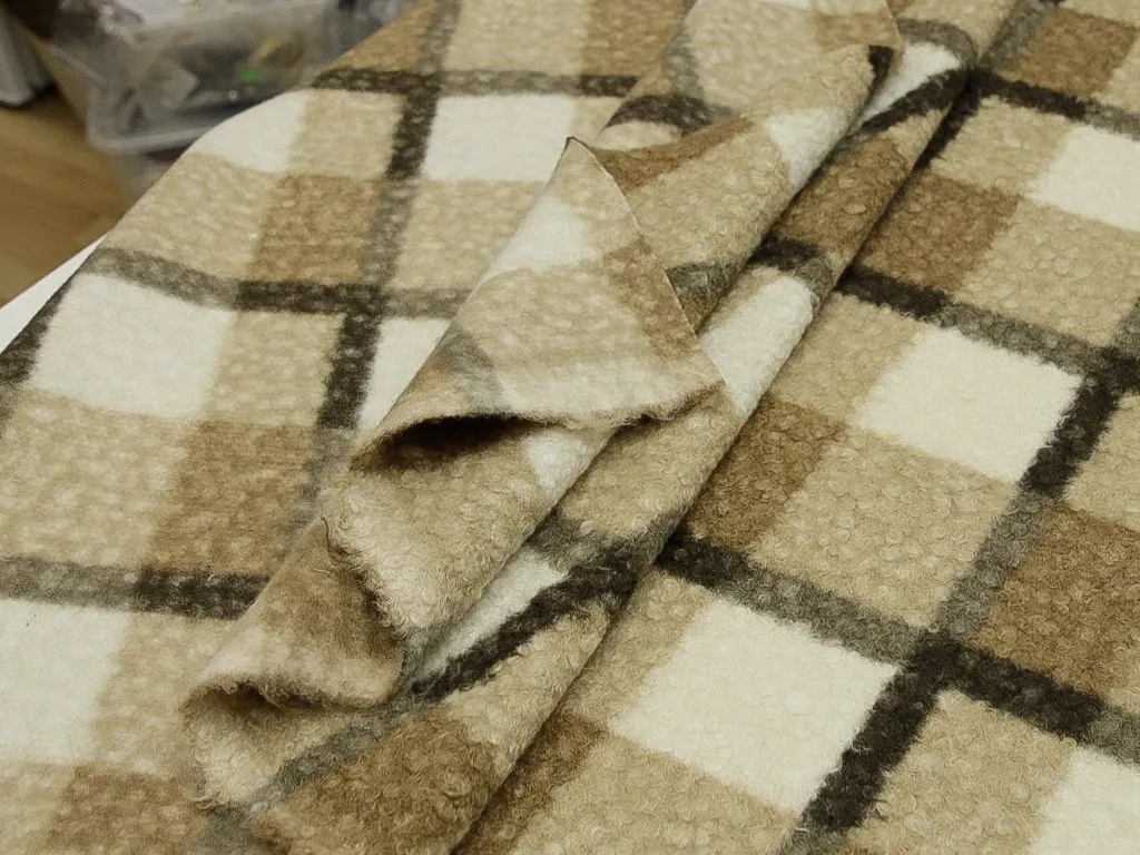 Пальтовая ткань, с текстурой "Барашек", в бежево-коричневую клетку
